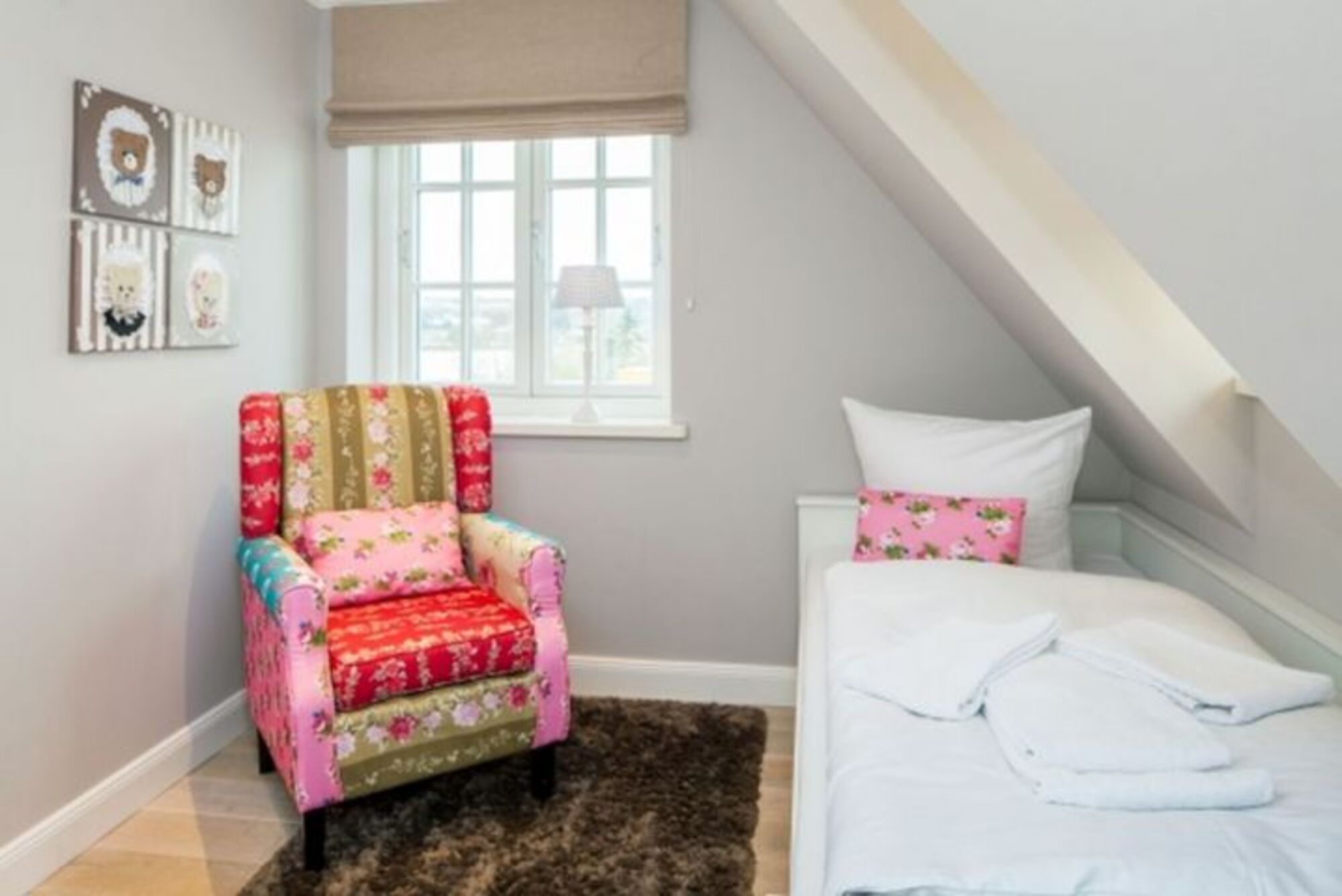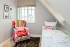 Im 1. Stock befindet sich ein Schlafzimmer mit Doppelbett und zwei Schlafzimmer mit jeweils einem Einzelbett. Im Souterrain befinden sich zwei Schlafzimmer mit Doppelbetten.