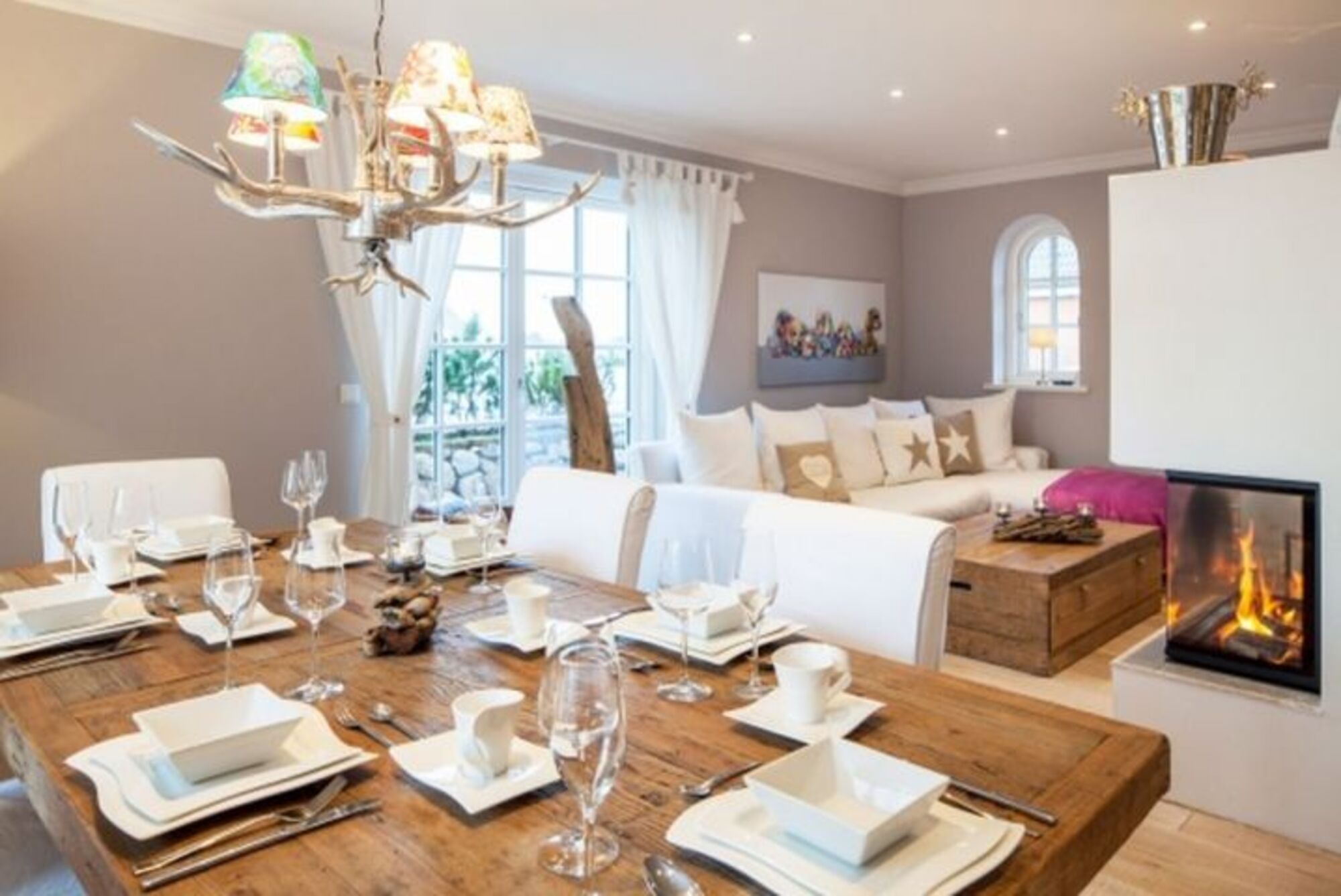 Der Wohn- und Essbereich (im EG) bietet viel Platz um in großer oder kleiner Runde gemütliche Stunden am knisternden Holz-Kamin zu verbringen.