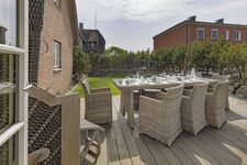 Modernes Ferienreihenhaus unter Reet mit Kamin und großem Garten