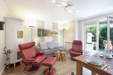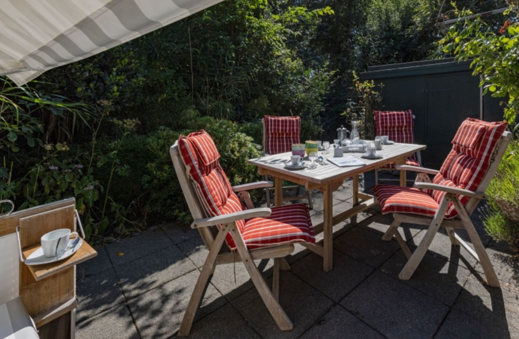 Helles Appartement mit kleiner Terrasse und Strandkorb im Erdgeschoss