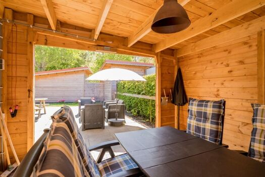 Freistehende Ferienhaus mit umzäuntem Garten und überdachter Terrasse