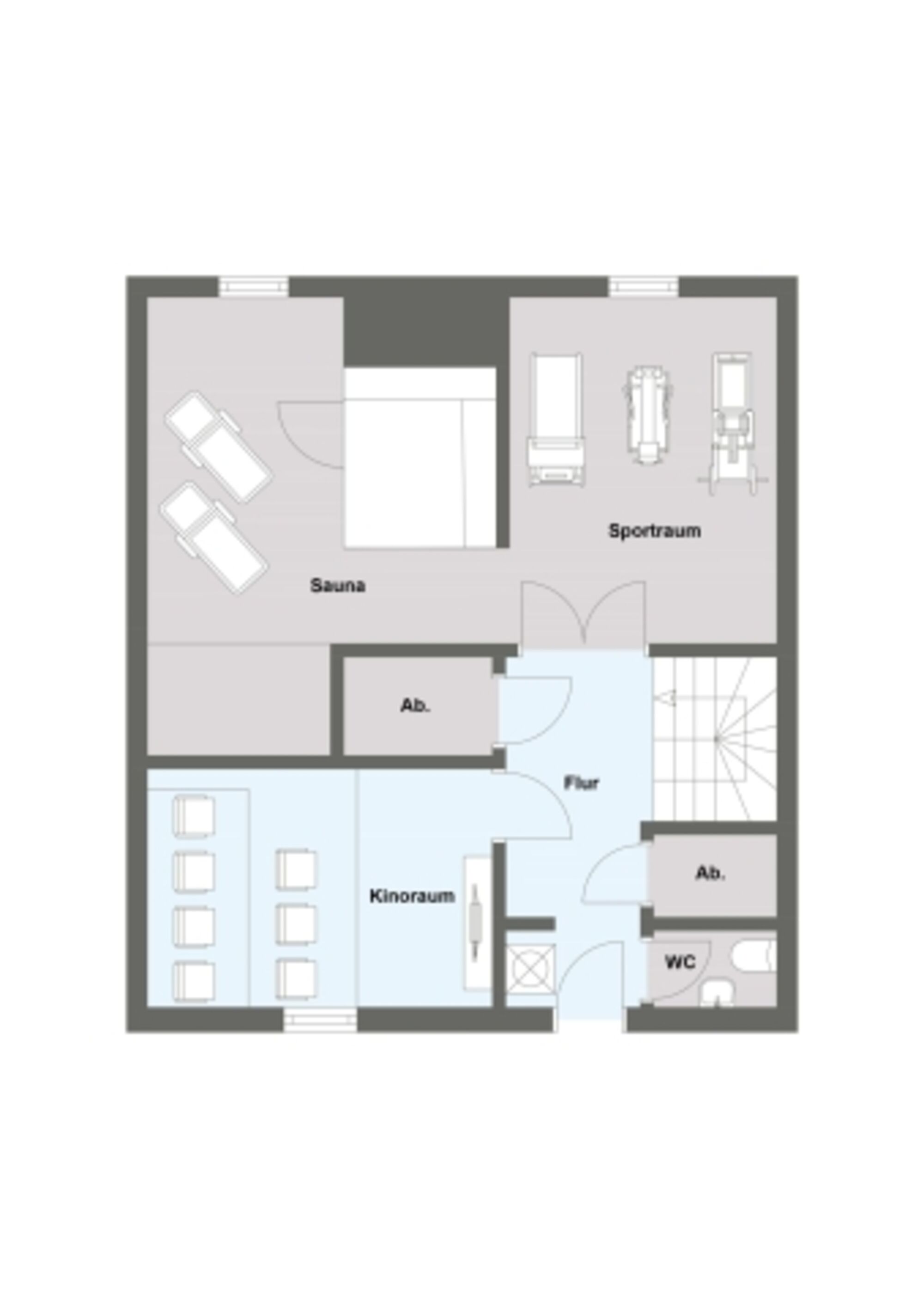 Im Souterrain steht Ihnen ein separater Kinoraum mit echten Kinosesseln und einer PS4 zur Verfügung.
