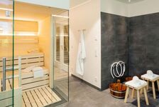 Außerdem befindet sich dort ein mit "LifeFitness" ausgestatteter Fitnessraum und eine Wellness-Landschaft mit Sauna.