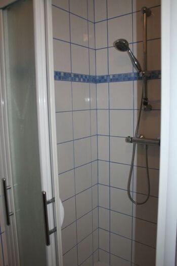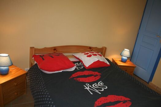 Einrichtung: Linke Haushälfte: Wohnfläche ca. 70 qm. EG: Eingangsbereich mit großer Garderobe. Wohnraum mit Sitzgruppe (Schlafcouch) und Ausgang in den Garten, SAT-TV. Schlafzimmer mit Doppelbett (franz. Bett) und Schlafzimmer mit 2 Einzelbetten. Integrierte Küche mit Herd mit Dunstabzug, Mikrowelle, Spülmaschine, Tiefkühltruhe, Toaster, Kaffeemaschine, Essplatz. Bad mit Dusche und WC. Waschmaschine.
