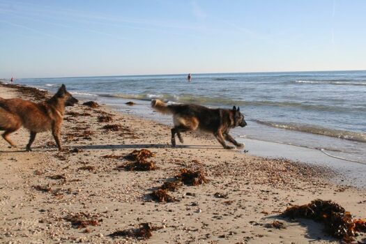 "fiffi"ge Kriterien: Hier sind Sie mit großen und auch mehreren Hunden herzlich willkommen. Der Garten ist komplett mit stabilem Stabmattenzaun eingezäunt. Bis jetzt gab es noch nie Probleme mit den Hunden am Strand (einige Strandabschnitte sind im August gesperrt)