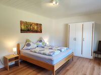 Diese barrierefreie Wohnung befindet sich im Erdgeschoss des Hauses und hat eine Größe von 150 m², plus Balkon und Terrasse. Diese sind mit Gartenmöbeln ausgestattet, von hier gelangen Sie über ein paar Stufen direkt auf die eingezäunte Wiese. Im Wohnbereich steht Ihnen eine Sitzgelegenheit, Sat.-TV, Internetradio, gratis Wi-Fi und ein Telefon zur Verfügung. Die Küche ist eingerichtet mit einem Essbereich, Geschirrspüler, Mikrowelle, Kaffeemaschine, Wasserkocher, Toaster, Ceran- Kochfeld mit Backofen, Kühl- und Gefrierschrank, Geschirr usw. Dazu gehören noch drei Schlafzimmer, mit je einem Doppelbett 1,80 x 2,00, sowie zwei Badezimmer mit Waschbecken, Dusche und WC. Als weitere Schlafmöglichkeit stellen wir Zustellbetten (gegen Aufpreis) zur Verfügung.