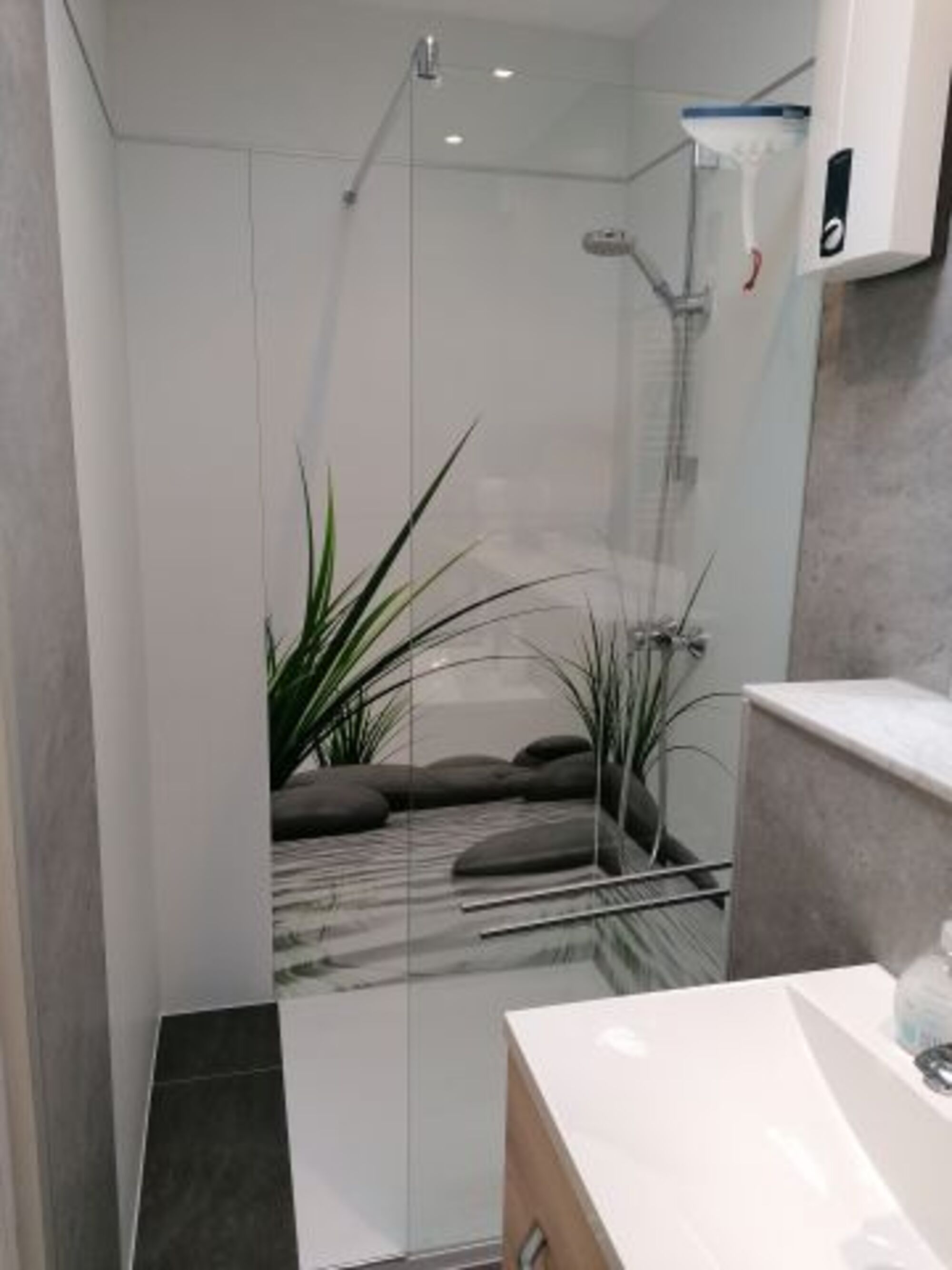 Das Badezimmer wurde komplett neu gestaltet und bietet eine hochwertige Ausstattung.