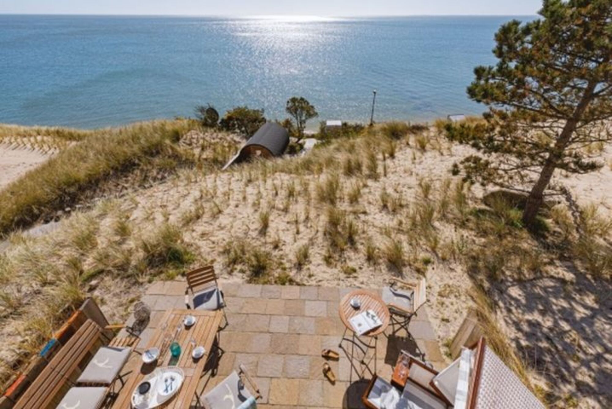 Von Ihrer im Erdgeschoss gelegenen Wohnung "Momme's Ausblick" haben Sie, wie von der Wohnung "Jonna´s Ausblick" darüber, direkten Zugang zur Meer-Terrasse mit einem einmaligen Blick über das Wattenmeer und den Lister Oststrand mit freiem Blick bis nach Dänemark.