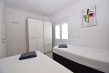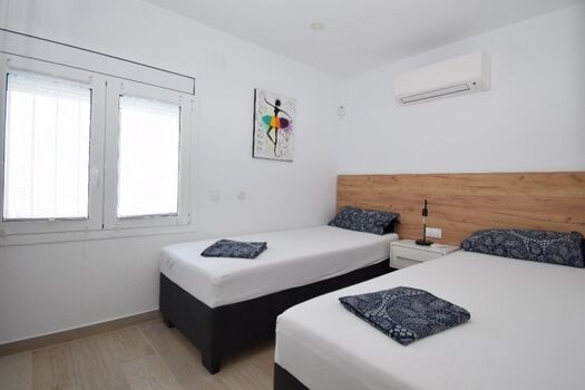 1 Schlafzimmer mit 2 Einzelbetten, Klima, Kleiderschrank, Fenster mit Fliegengittern und elektrischen Rollläden.