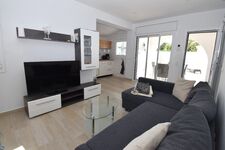 Sonniges Wohnzimmer mit Klima, Eck-Couch, SAT-TV und Zugang zur Terrasse und Pool.