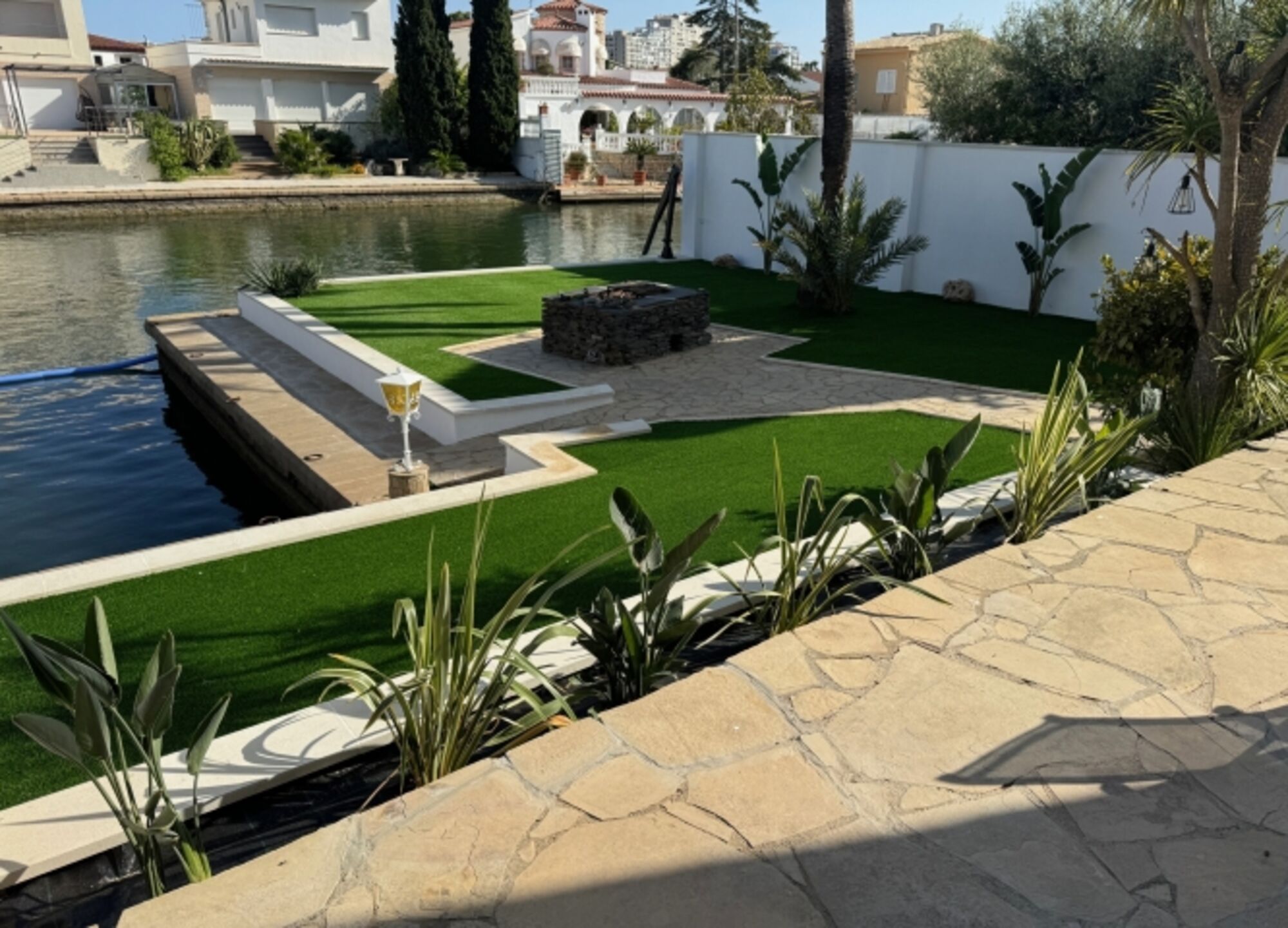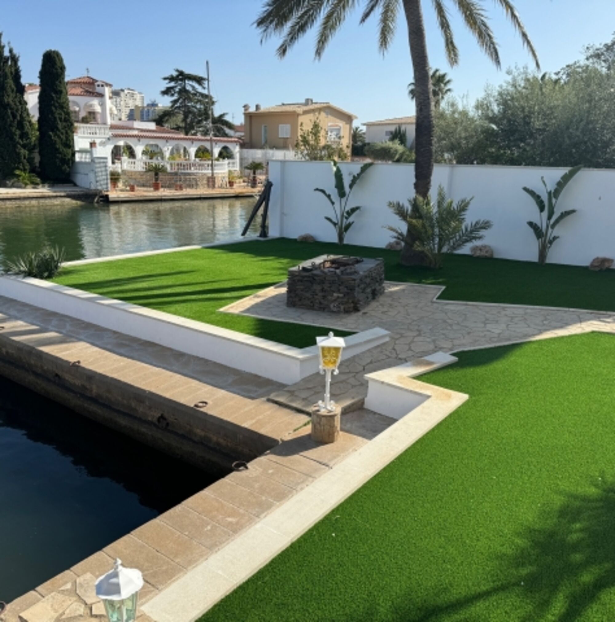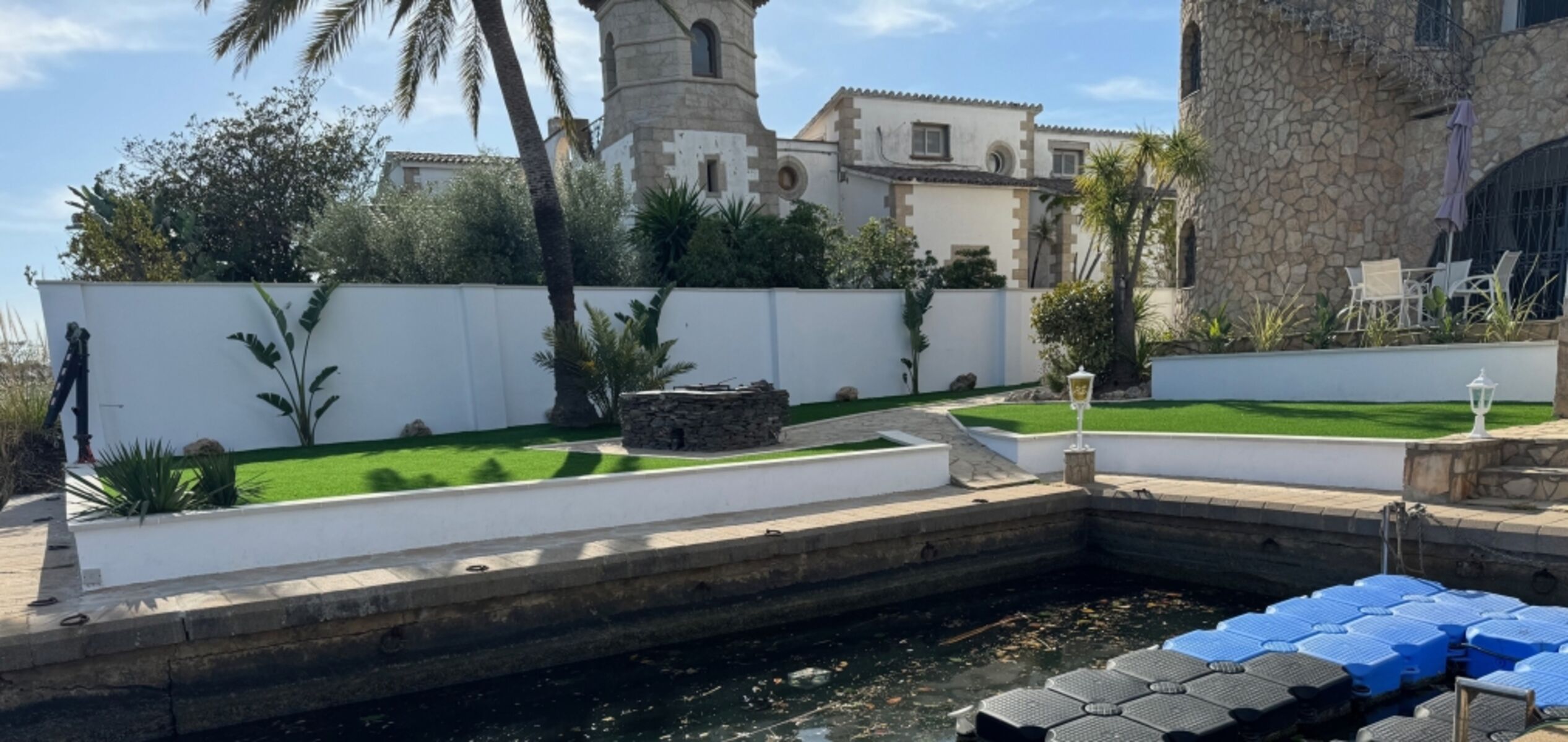 Parkplatz, Pool, Garten, Bootanleger, Jetski Ponton im privaten Hafen im Grundstück.