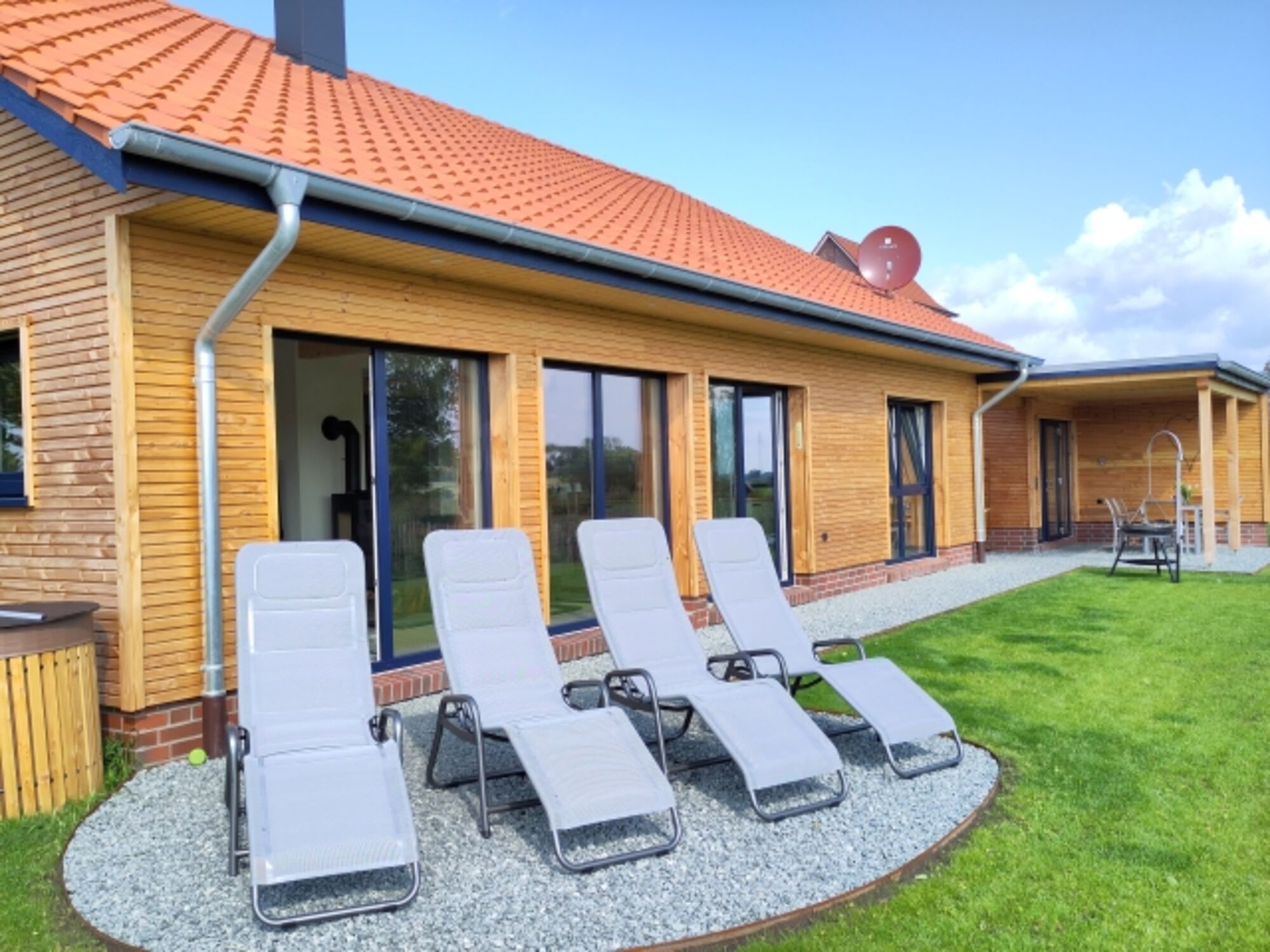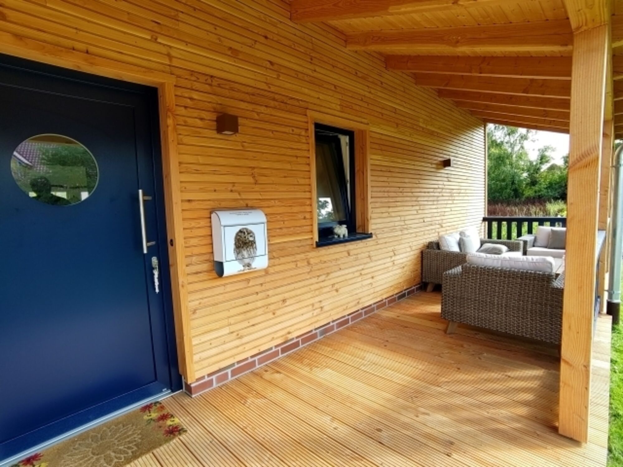 Die Veranda auf der Westseite des Hauses, ausgestattet mit gemütlichen Loungemöbeln, wird ein ideales Plätzchen um gegen Abend, mit einem leckeren Getränk in der Hand, auch noch die letzten Sonnenstrahlen des Tages einzufangen. Und in den kälteren Jahreszeiten sorgen der Kamin im Wohnbereich und die Sauna für wohlige Wärme nach ausgiebigen Ausflügen in das ländliche Wangerland und das Unesco Weltnaturerbe Wattenmeer.