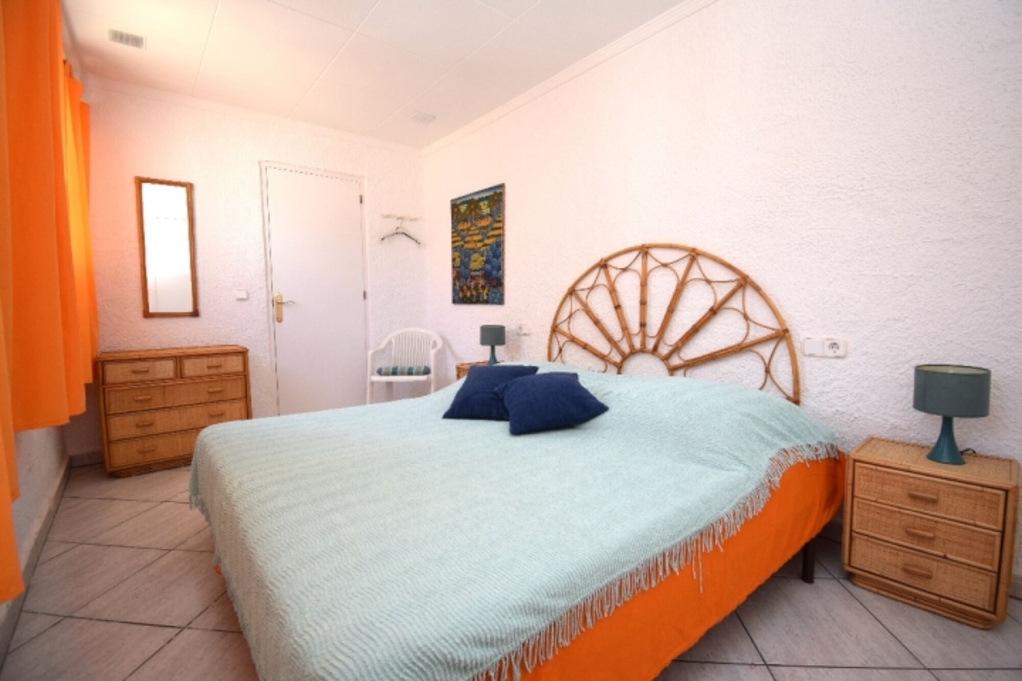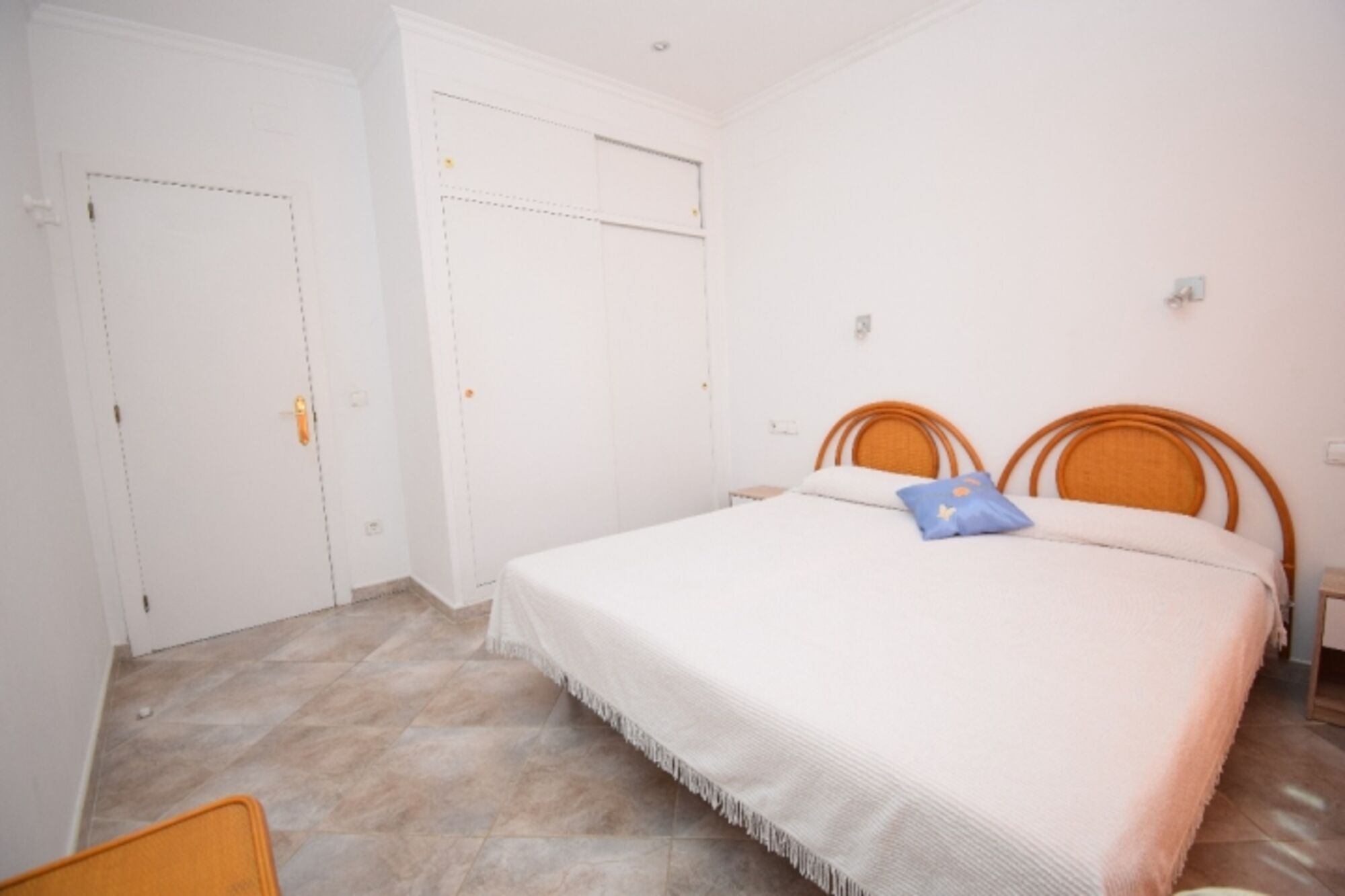 1 Schlafzimmer mit Doppelbett (2 Einzelmatratzen 90 x 190-200 cm), Einbauschrank, Fenster mit Fliegengitter