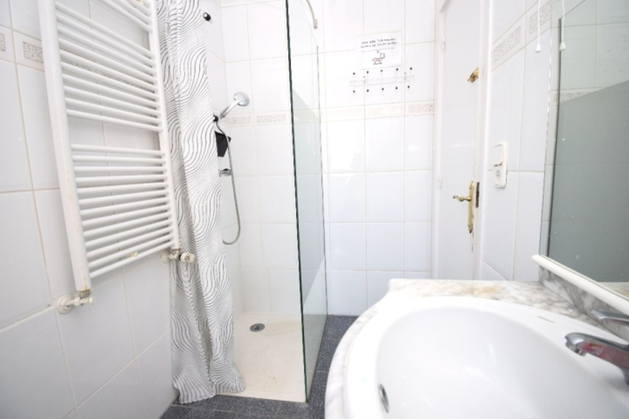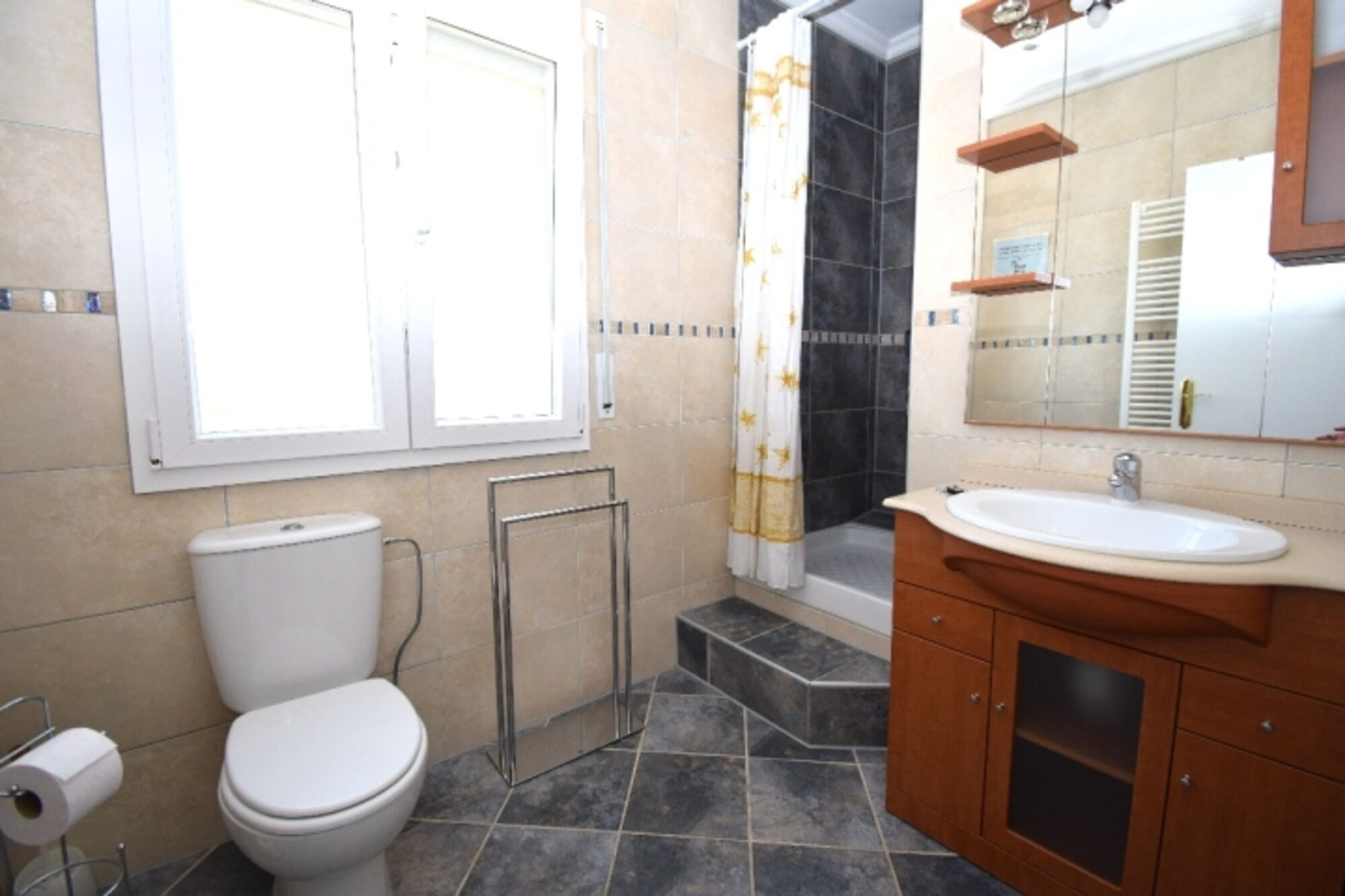 1 Badezimmer mit Dusche und WC, Fenster mit Fliegengitter