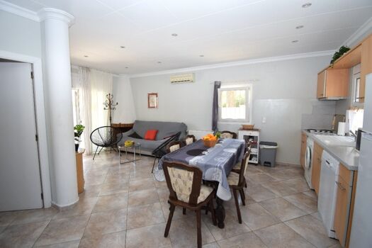 angeschlossener offener Küchenbereich. Zugang zur Terrasse und Pool.