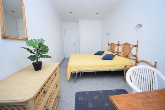 1 Schlafzimmer mit Doppelbett (2 Einzelmatratzen 90 x 190-200 cm) und Einbauschrank, Fenster mit Fliegengitter