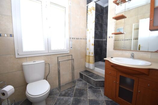1 Badezimmer mit Dusche, WC u. Fenster mit Fliegengitter