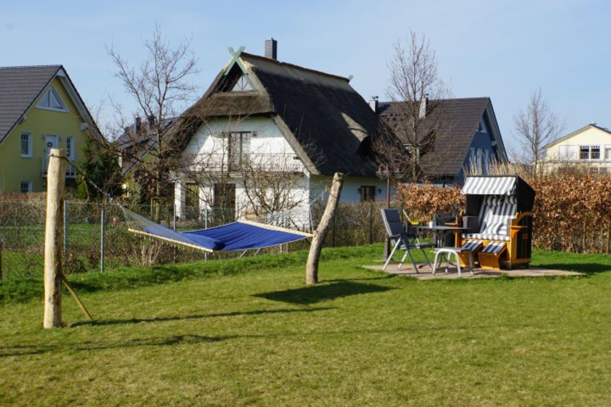 Bei dem Ferienhaus handelt es sich um eine Reethaushälfte. Es liegt strandnah und sehr ruhig am Ende einer Anliegerstraße. Die Casa Baltica ist überwiegend mit gemütlichen und stilvollen Echtholzmöbeln eingerichtet, die teils im maritimen Stil sind. Der um die Terrasse befindliche Teil der Grünfläche ist eingefriedet und damit bestens geeignet für Gäste mit Hunden. Genießen Sie das Ambiente des Hauses und erleben Sie entspannte, erholsame Urlaubstage.
