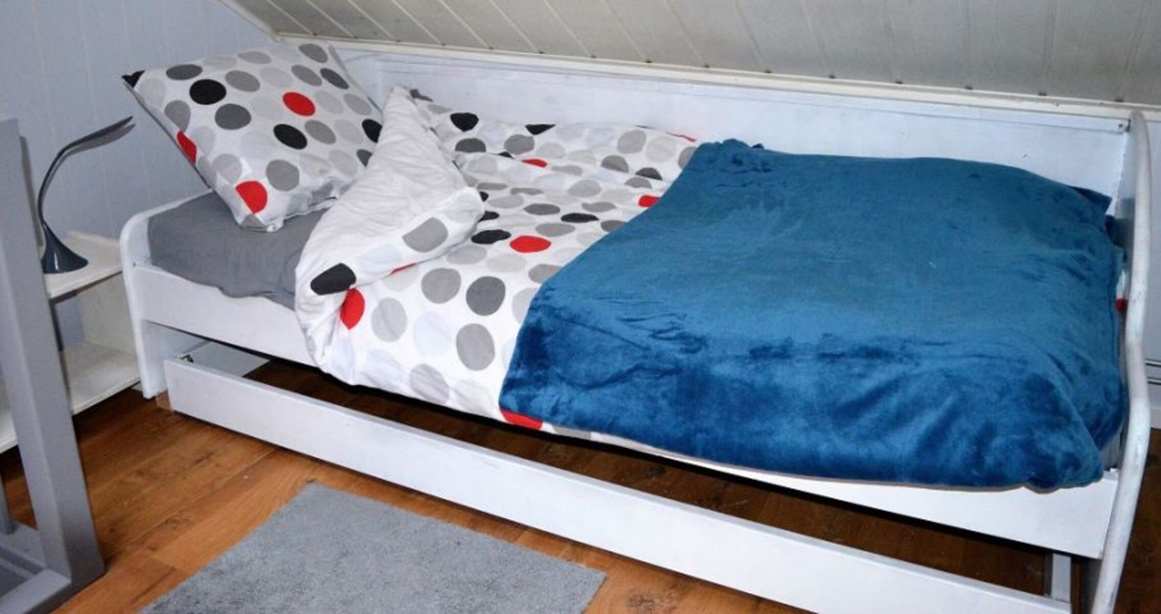 Doppelbett 1,80 x 2,00m, Einzelbett, Kommode, Spiegel, Leselampe am Bett