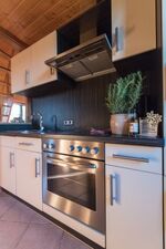 4-Platten Herd, Cerankochfeld, Dunstabzugshaube, Kühlschrank mit Gefrierfach, Korkenzieher / Flaschenöffner, Gewürze (Salz, Pfeffer, Zucker), Geschirrhandtücher, Mülltüten