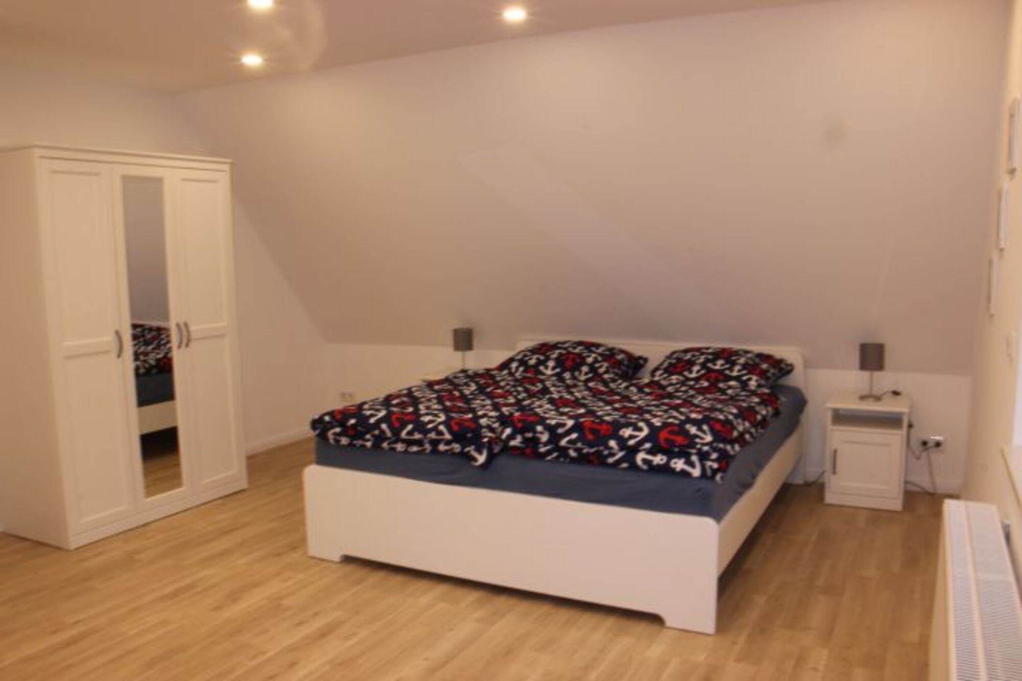 Doppelbett 1,80 x 2,00m, Kommode, Spiegel, Leselampe am Bett