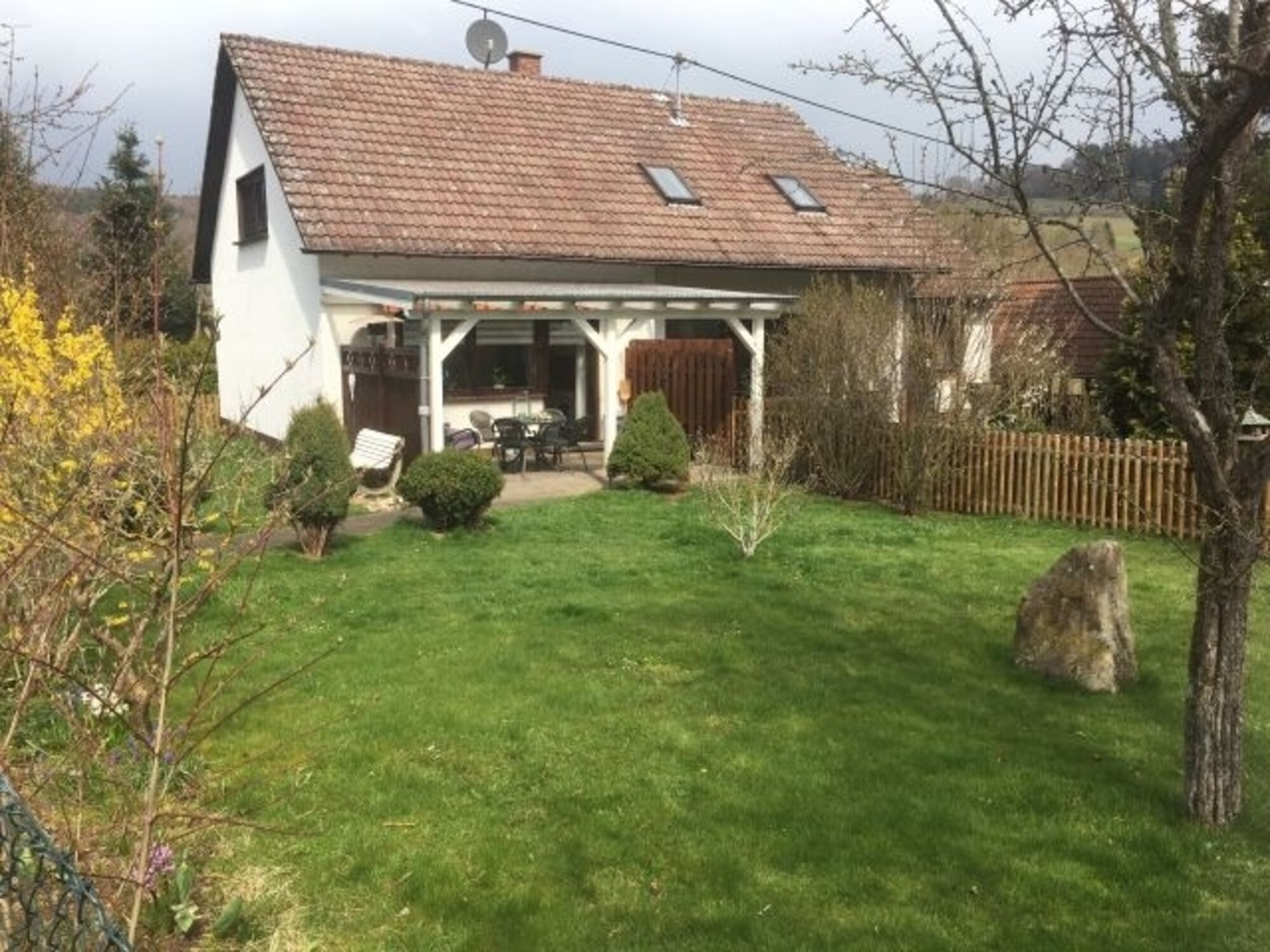 Die Terrasse und Garten sind mit Zaun und Sichtschutz getrennt. Der Garten in komplett eingezäunt. Hunde sind bei uns natürlich herzlich willkommen.