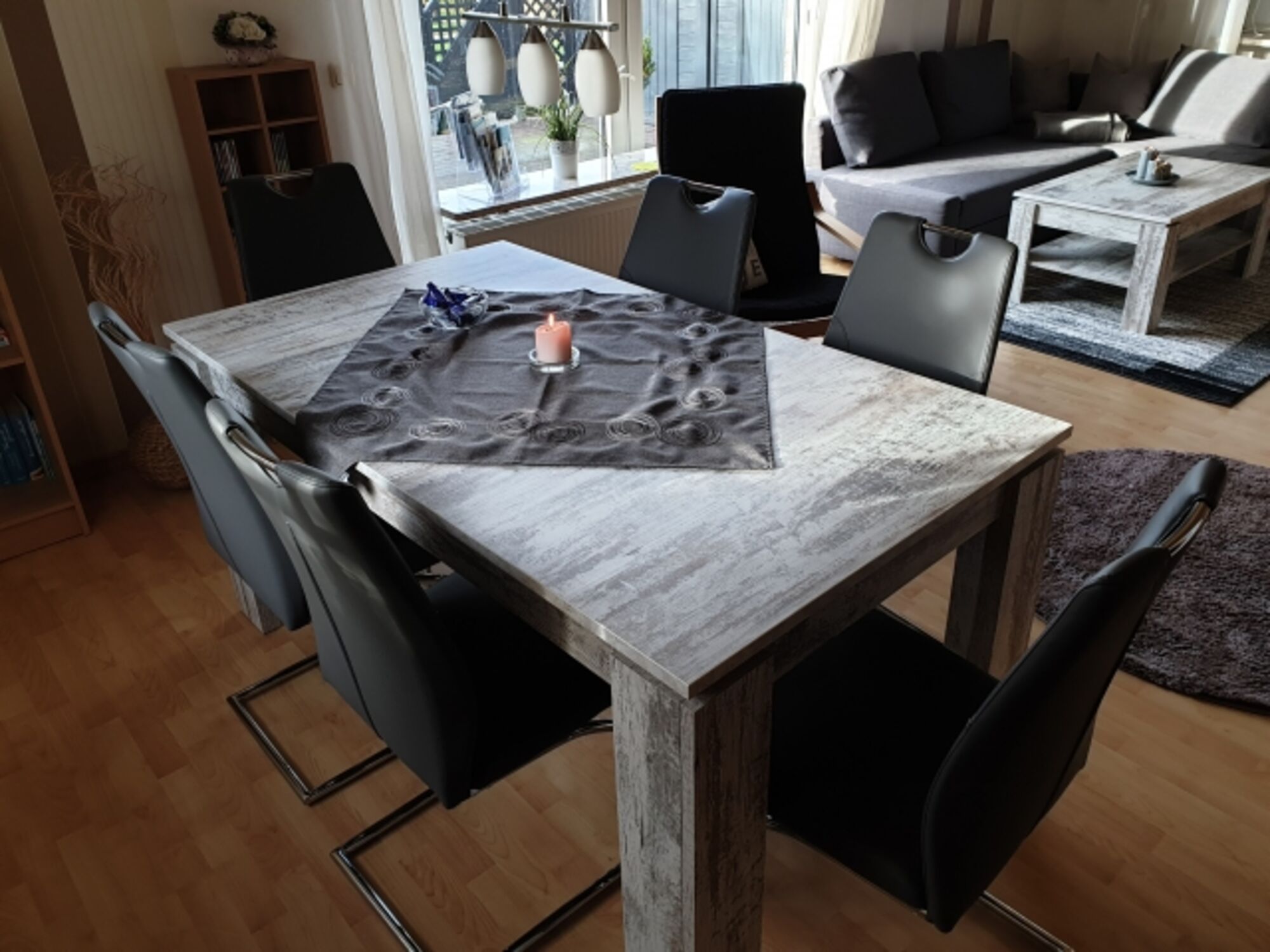 Cerankochfeld, Dunstabzugshaube, Gefrierschrank, Mixer, Korkenzieher / Flaschenöffner, Gewürze (Salz, Pfeffer, Zucker), Geschirrhandtücher, Mülltüten, Essplatz in der Küche