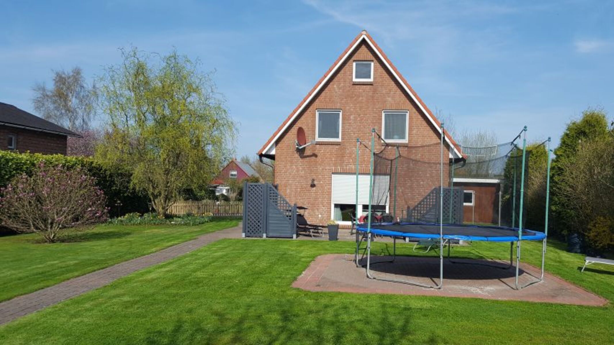 In ruhiger Lage liegt unser Ferienhaus Elbmarsch und dient unseren Gäste zur Alleinnutzung. Der sehr große, umzäunte Garten lässt Kinderherzen höher schlagen. Der große Piratenkletterturm, ein großes Trampolin sowie ein Spielhaus lassen keine Langeweile aufkommen, Auch die vierbeinigen Gäste haben sehr viel Platz zum Toben und Spielen. Die große Südterrasse sowie der Sonnenplatz unter den Apfelbäumen laden zum Verweilen und Erholen ein. Der wunderschöne lange Sandstrand Krautsand mit Hundestrand ist in wenigen Minuten mit dem Auto oder Fahrrad zu erreichen. Auch viele Ausflugsziele, wie Hamburg, Cuxhaven und Bremen , der Vogelkieker, das Natureum, der Moorkieker finden Sie in der Nähe. Das neuwertige und liebevoll eingerichtete Ferienhaus lassen kaum Wünsche offen. Erholung und Entspannung? Das finden Sie im Ferienhaus Elbmarsch. Wir freuen uns auf unsere Gäste.