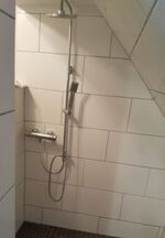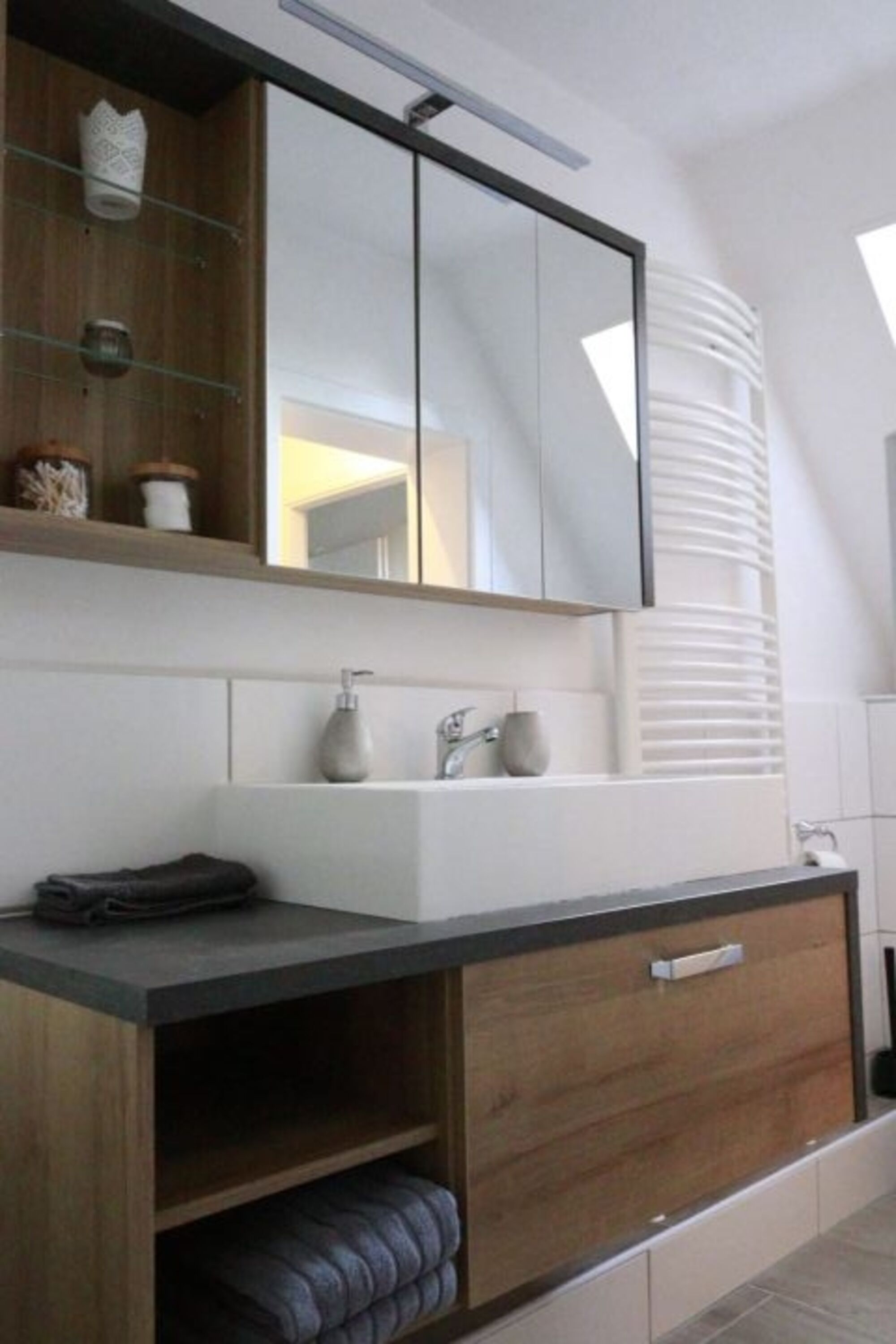 Im Obergeschoss befindet sich das Badezimmer mit Dusche und Badewanne sowie zwei Schlafzimmer.