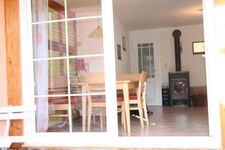 Es handelt sich um eine Wohnküche mit Kaminofen