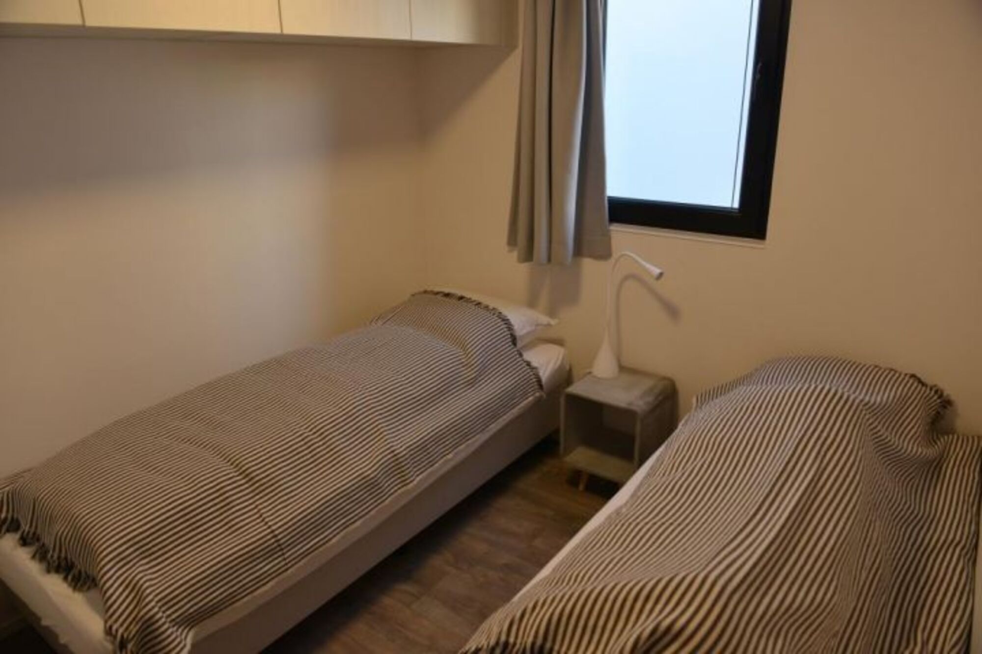 Es sind 2 Einzelbetten 80 x 200 cm - diese können aber auch zusammengeschoben werden. Spiegel, Leselampe am Bett.
