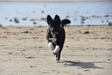 Ca. 300 Meter bis zum Strand, laufen kann der Hund allerdings von dem ersten Meter an...
