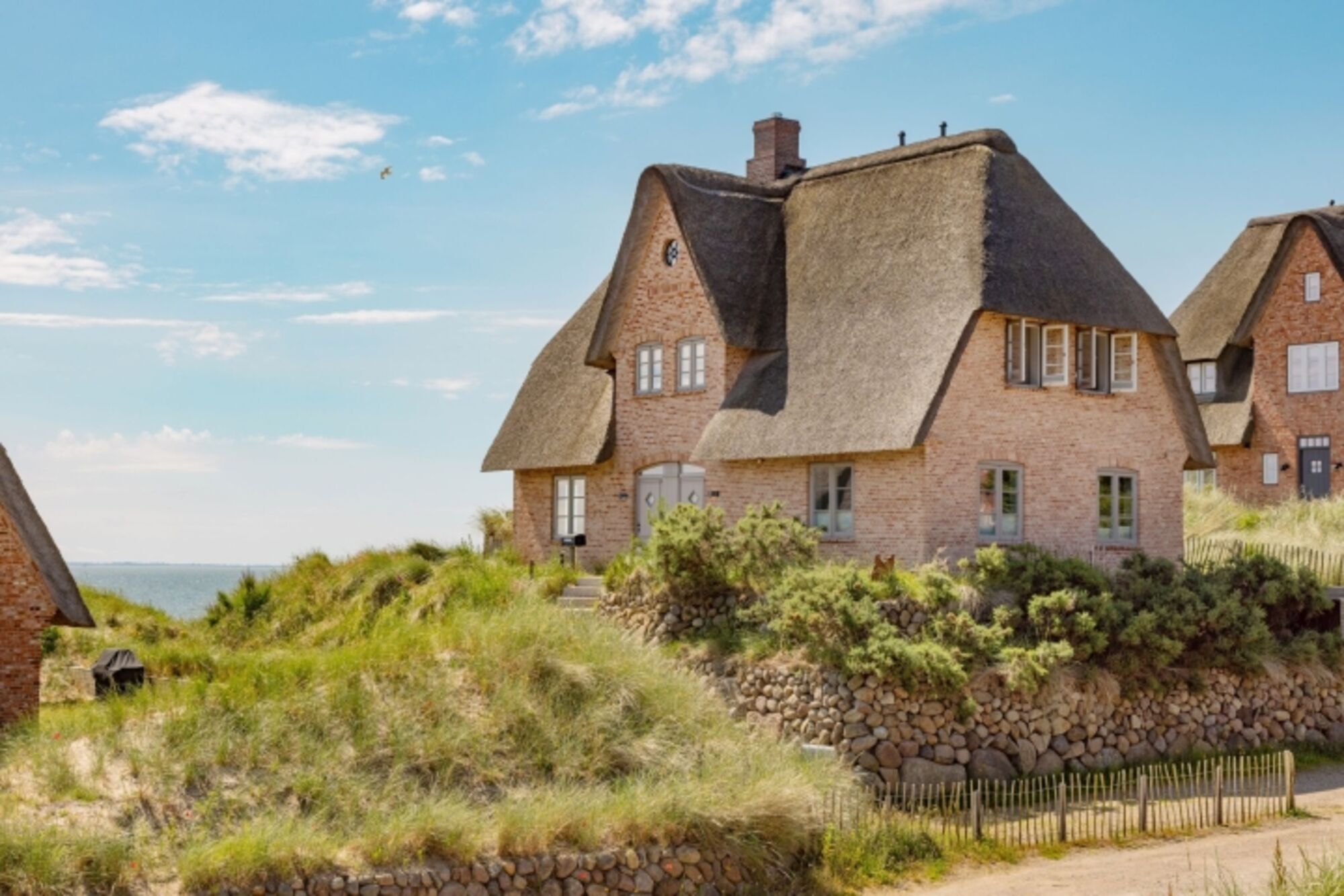 Modernes Feriendoppelhaus unter Reet mit unverbautem Meerblick