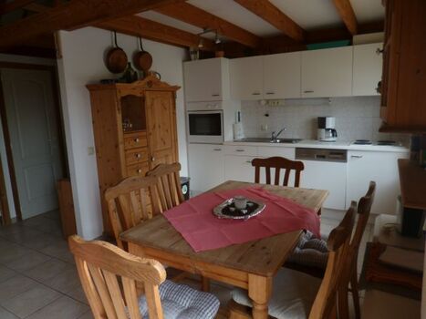 Cerankochfeld, Dunstabzugshaube, Kühlschrank mit Gefrierfach, Kaffeevollautomat, Senseo-Kaffeeautomat, Eierkocher, Mixer, Korkenzieher / Flaschenöffner, Gewürze (Salz, Pfeffer, Zucker), Öl / Essig, Essplatz in der Küche, TV in der Küche