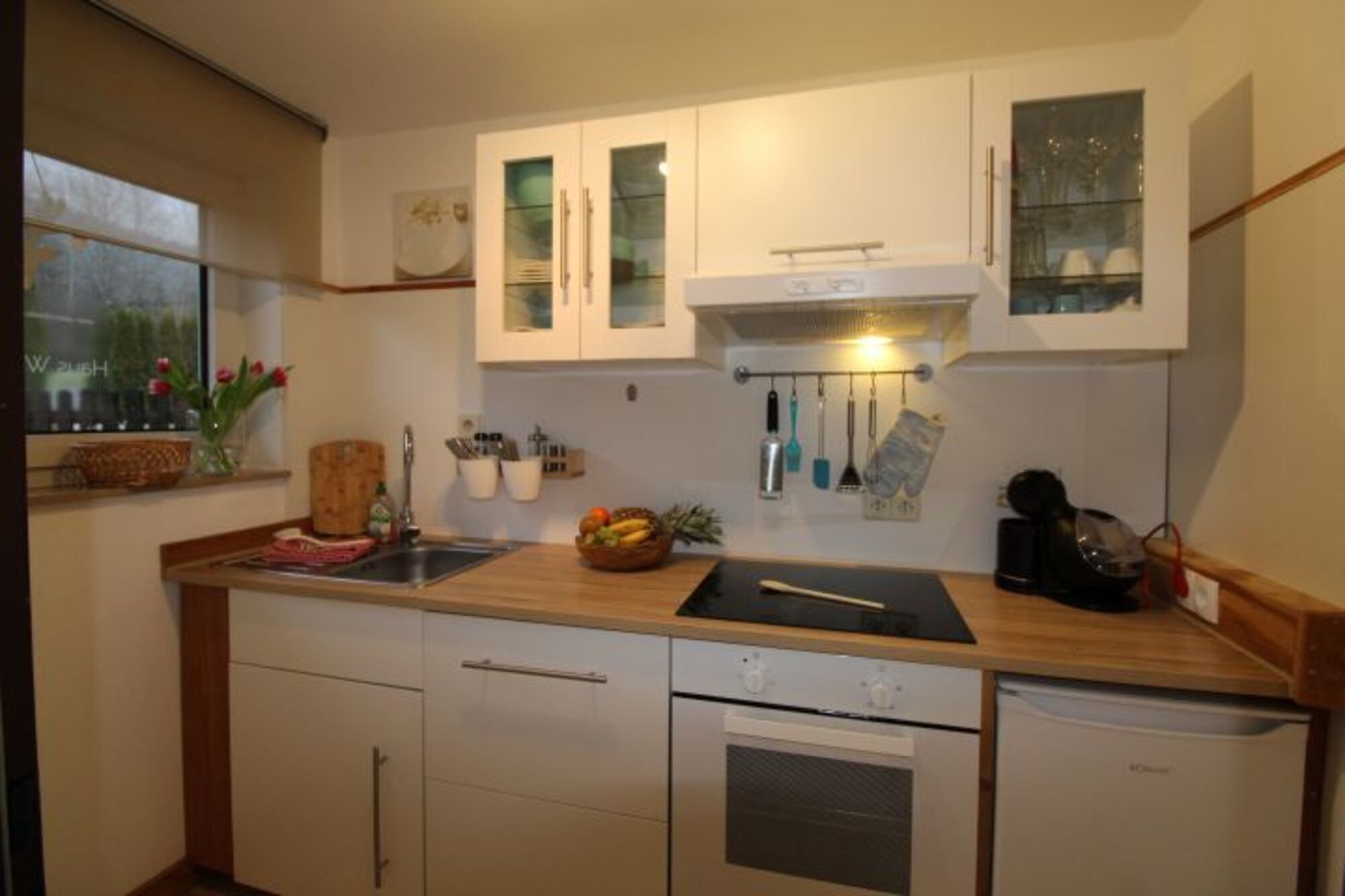 Natürlich haben ich auch an die vielen kleinen Dinge gedacht, die Ihren Aufenthalt so bequem machen: Senso neben der klassischen Kaffeemaschine, Backofen, Kühlschrank mit Gefrierfach, Geschirrspüler, Toaster, Heißluftfriteuse, Föhn und vieles mehr stehen bereit. Packen Sie also nur das Nötigste ein – ich sorge dafür, dass Sie nichts vermissen.