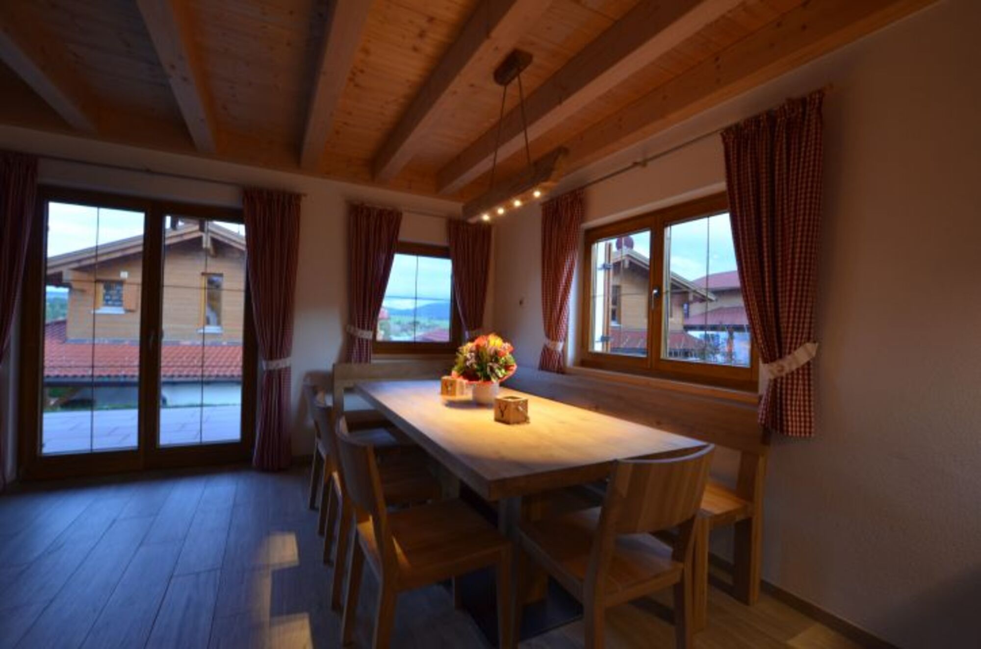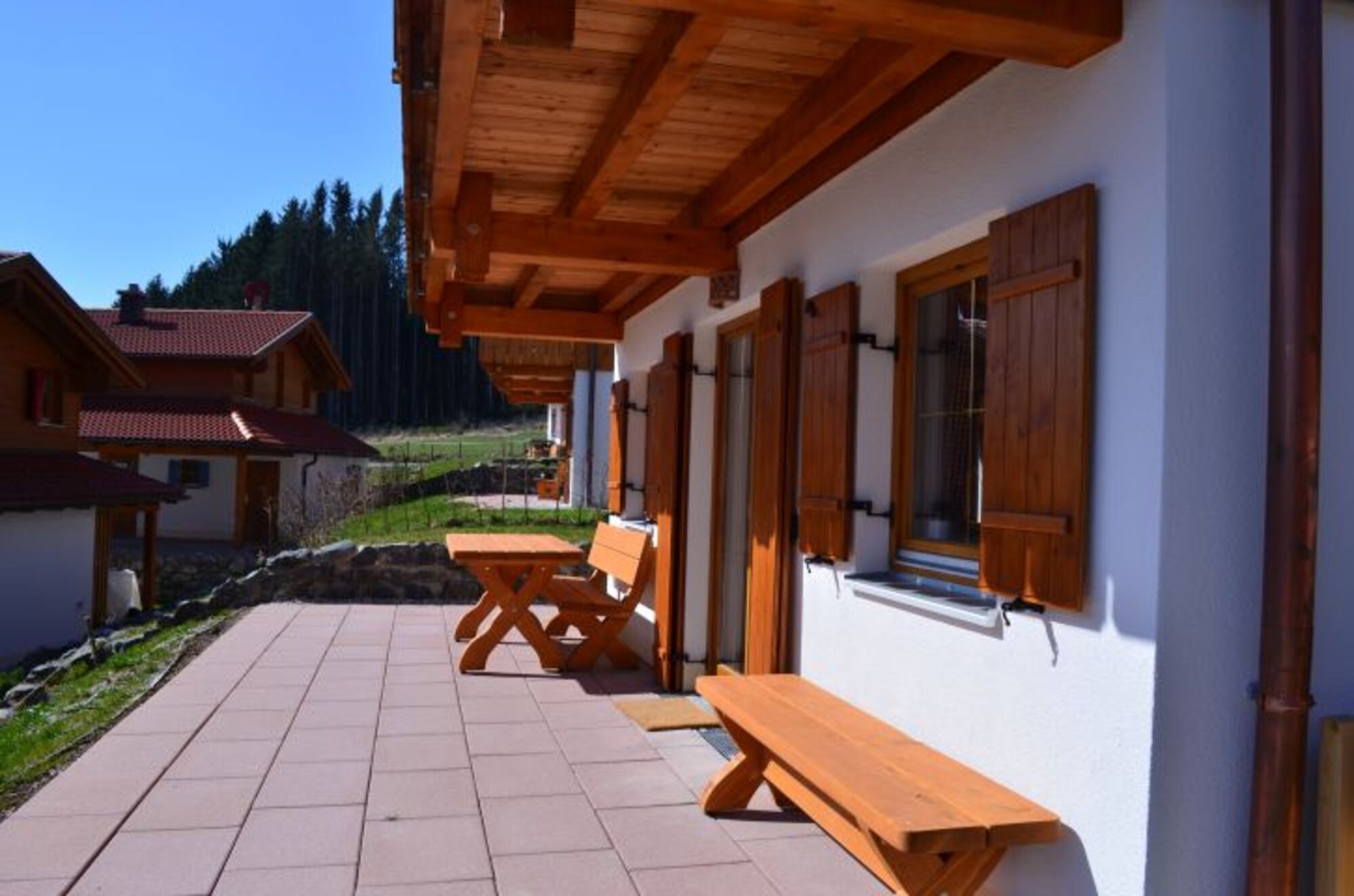 Von zwei der Schlafzimmer aus, erreichen Sie den Balkon mit Blick über das Feriendorf zum Lechsee und der Bergkette.