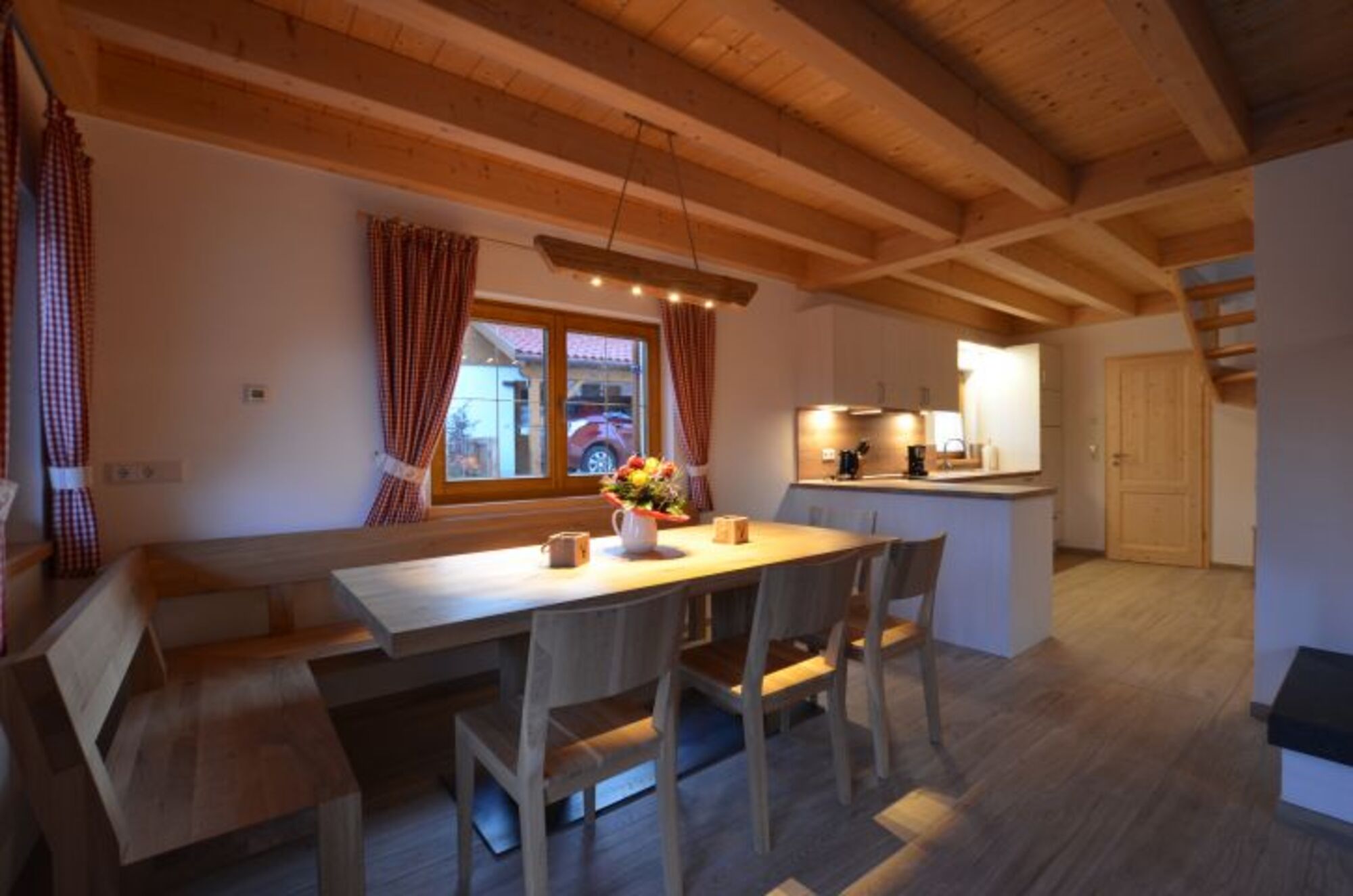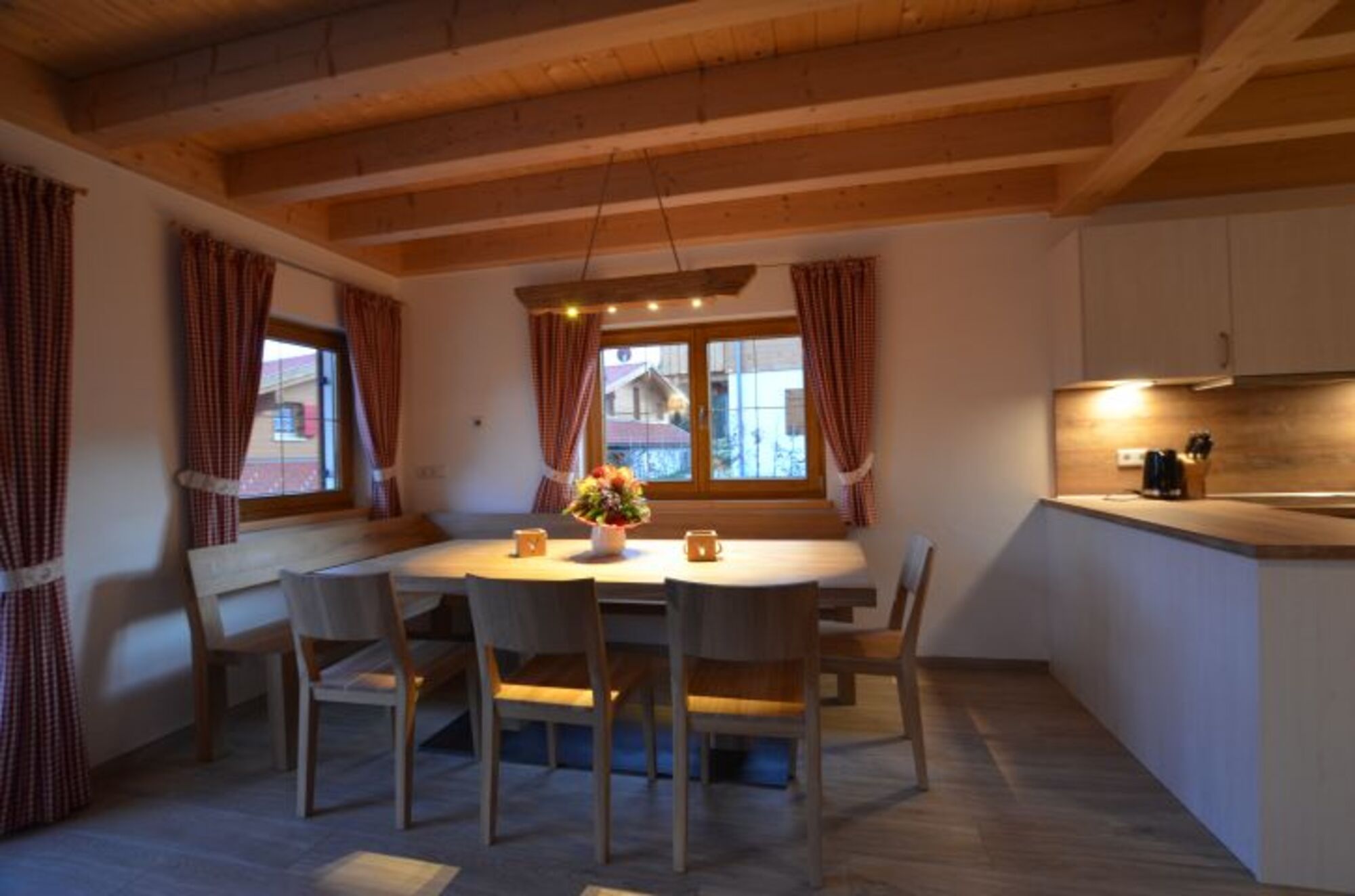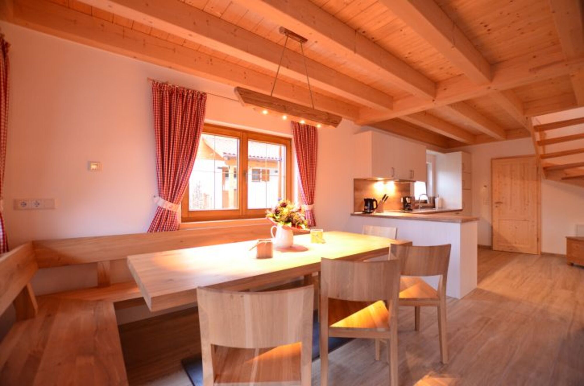 Lichtdurchflutet mit offenem Wohnraum, großem Essbereich und gut ausgestatteter Küchenzeile lässt dieses Ferienhaus keine Wünsche offen. Ein schöner Kaminofen mit gemütlicher Couch lädt auch an kalten Wintertagen zum gemütlichen Beisammensein ein.