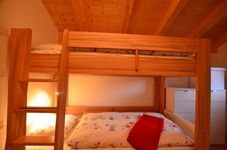 Über die gewendelte Treppe erreichen Sie das zweite Badezimmer ebenfalls mit Dusche, WC und Waschbecken ausgestattet. Im Obergeschoß bieten drei Schlafzimmer ausreichend Platz für bis zu 6 Personen. 2 Schlafzimmer mit Doppelbett 180/200! Das dritte Schlafzimmer verfügt über ein Etagenbett.
