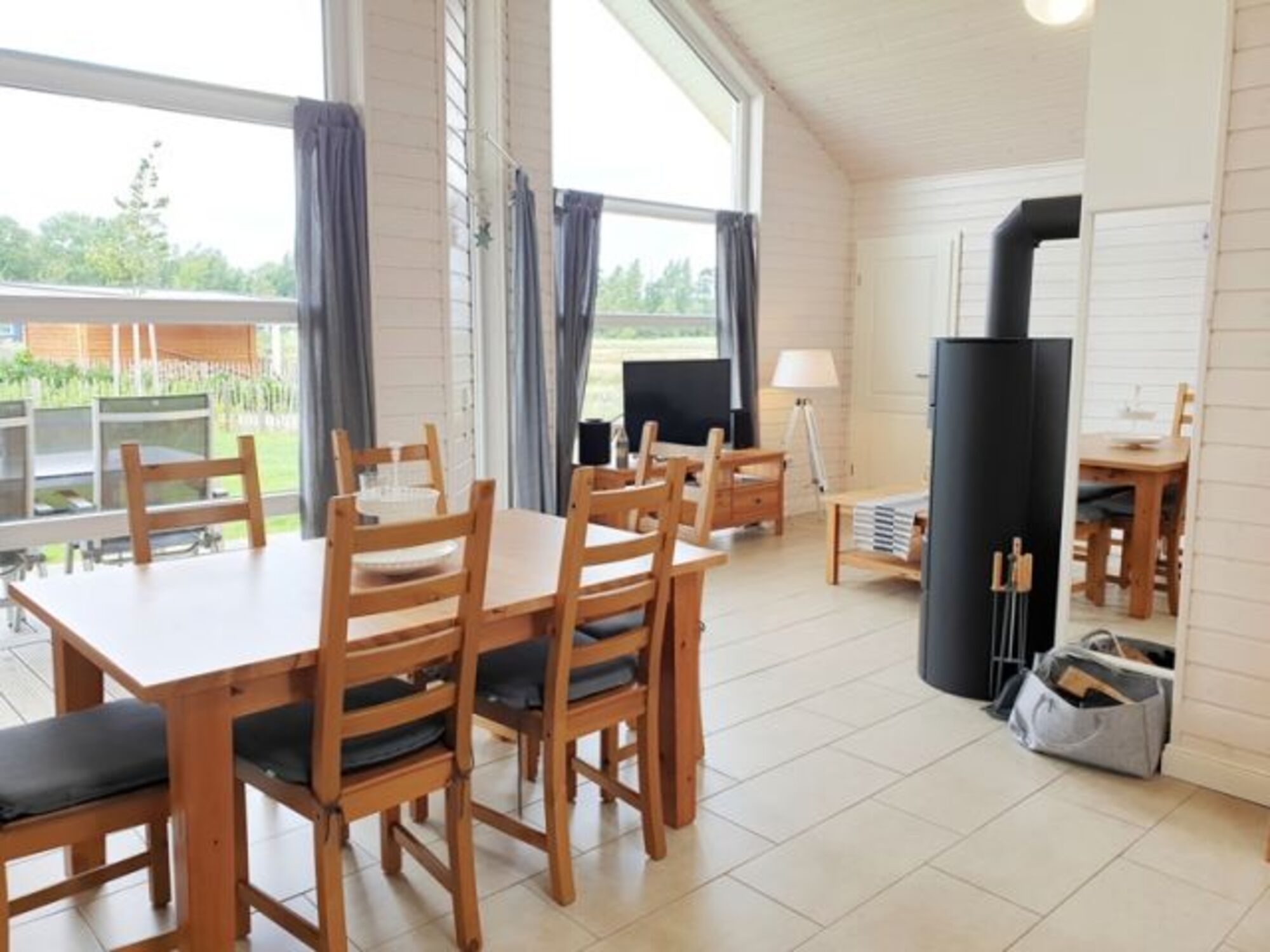 Zusatzaustattung: Waschmaschine, Wäschetrockner, Internetflatrate (WLAN), Kaminofen, Blu-Ray-DVD-Player, Sauna, SAT-TV, 2 Flachbildschirm-Fernseher, Mini-Stereoanlage (Radio / CD), I-Pod-Docking-Station, Bücher, Spiele, Bügeleisen, Bügelbrett, Reisebett mit separater Matratze, Hochstuhl, Saisonstrandkorb auf dem Deich (Mai-Sept.)