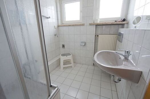 Unsere Wohnung Nr. 3 ist ca. 75 m² groß. Sie besteht aus einem Wohnzimmer mit Küchenzeile und 6-Personen-Eßtisch sowie zwei separaten Schlafzimmern - beide mit Ehebett und zusätzlichem Bett. Jedes Schlafzimmer und das Wohnzimmer hat einen Balkon. Das Duschbad hat ein Fenster zum Garten und ist geräumig. Ein Fön und ein Kosmetikspiegel sind vorhanden. Die Küche ist ausgestattet mit einem 3-Sterne-Kühlschrank, Geschirrspüler, Kaffeemaschine, Toaster, Wasserkocher, 4-Platten-Herd und Backofen, einem Mikrowellengerät und für 15 Personen Gläser, Geschirr, Töpfe und Besteck. Zur Wohnung gehört ein Kabel-TV, ein Radio-Wecker, ein DVD-Gerät und ein CD-Kassetten-Radio-Gerät.
