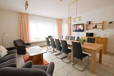 Diese Wohnung wird gerne als Mittelpunkt für gemeinsame Mahlzeiten genutzt und kann im Essbereich für 10-14 Personen ausgestattet werden. Dies wird gerne von Gästen genutzt, die mehrere Wohnungen für einen Familien- oder Freundeskreis im gleichen Haus buchen möchten.