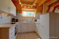 Die Küche ist mit einer Vielzahl verschiedenster elektrischer Geräte, ausreichend Koch- und Essgeschirr, ausgestattet. Ein großer 250 l Kühlschrank mit Gefrierfach, eine Spülmaschine sowie ein 4 Platten Ceranfeld mit Backofen.