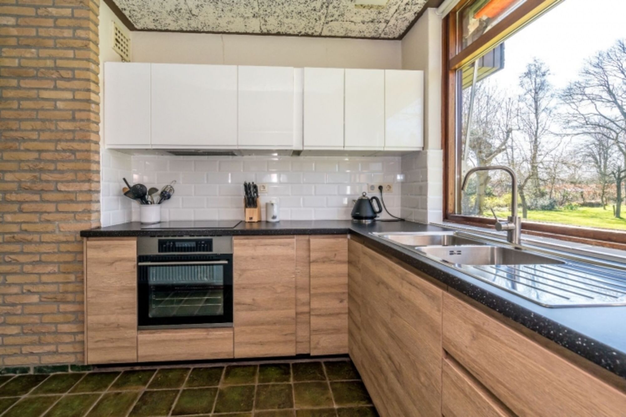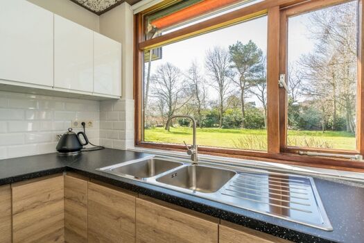 Die neue, offene Küche (2021), neben der Sitzecke für 6 Personen, ist großzügig eingerichtet, unter anderem mit einer Induktionskochplatte, einer Geschirrspülmaschine, einer Kühl-/Gefrierkombination, einem Backofen und einer Mikrowelle. In der geräumigen Waschküche steht u.a. eine Waschmaschine.