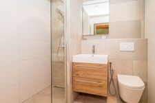 Im Erdgeschoss befinden sich 2 Schlafzimmer. Das Hauptschlafzimmer ist mit einem Doppelbett (180x200) ausgestattet und verfügt über ein eigenes, neues Badezimmer mit Dusche, Waschbecken und Toilette. Im zweiten Schlafzimmer befinden sich zwei Boxspring-Einzelbetten und ein Waschbecken. Beide Schlafzimmer verfügen über ausreichend Schränke. Im Flur befindet sich auch noch eine separate Toilette.