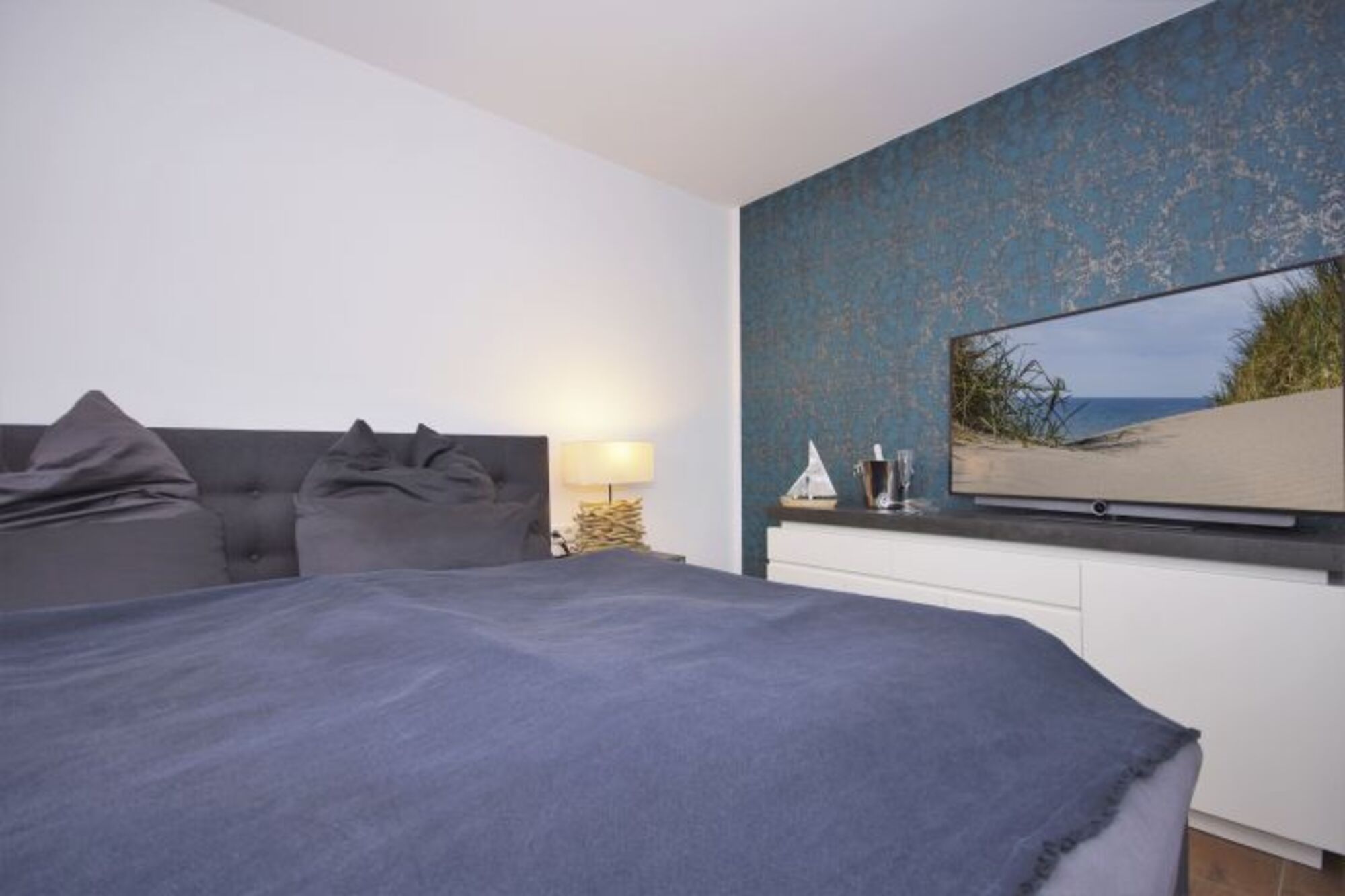 Zwei gemütliche Schlafzimmer stehen Ihnen als Gäste in der Ferienwohnung Loft in Sellin zur Verfügung und sind mit jeweils einem großen Boxspringbett (180x200cm) ausgestattet. In beiden Schlafzimmern befinden sich außerdem Kommoden und Kleiderschränke zur Verwahrung Ihrer Lieblingskleidungsstücke. In einem der Schlafzimmer steht Ihnen ein zusätzlicher Flachbild-Smart TV zur Verfügung und der Zugang zur Dachterrasse wird Ihnen hier ermöglicht.