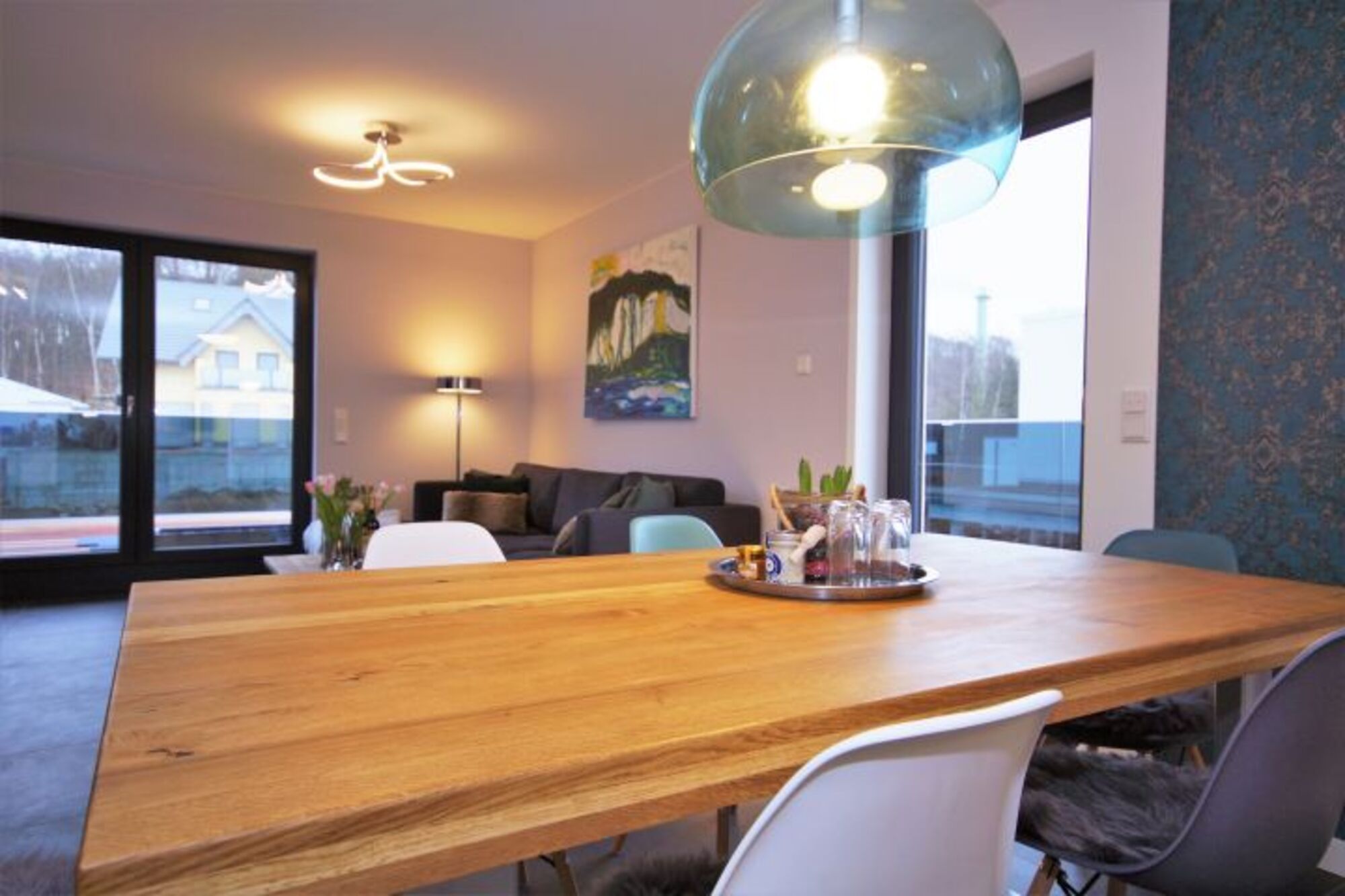 In dem ruhigen Gebäude im Bauhausstil in Sellin stehen zwei stilvoll eingerichtete Ferienwohnungen mit Designermöbelstücken für Familien, Alleinreisende oder kleine Gruppen für Sie offen.