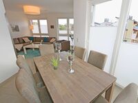 Herzlich willkommen in der Ferienwohnung 12 in der Strandvilla Baabe - nur 100 m vom Ostseestrand entfernt! Die 4-Raum-Wohnung erstreckt sich über zwei Etagen und bietet insgesamt 92 m² Wohnfläche sowie 28 m² möblierten Balkon. Sie ist für 6 Erwachsene und 1 Kleinkind im Kinderreisebett geeignet und mit hochwertigen Möbeln modern eingerichtet. Im Obergeschoss, das bequem per Fahrstuhl erreichbar ist, befinden sich drei Schlafzimmer, von denen jedes mit einem Boxspringbett und einem Flachbild-TV ausgestattet ist. Die Maisonette-Wohnung ist eine Nichtraucher-Unterkunft und verfügt über ein Insektengitter in jedem Schlafraum sowie im Wohn-/Küchenbereich.