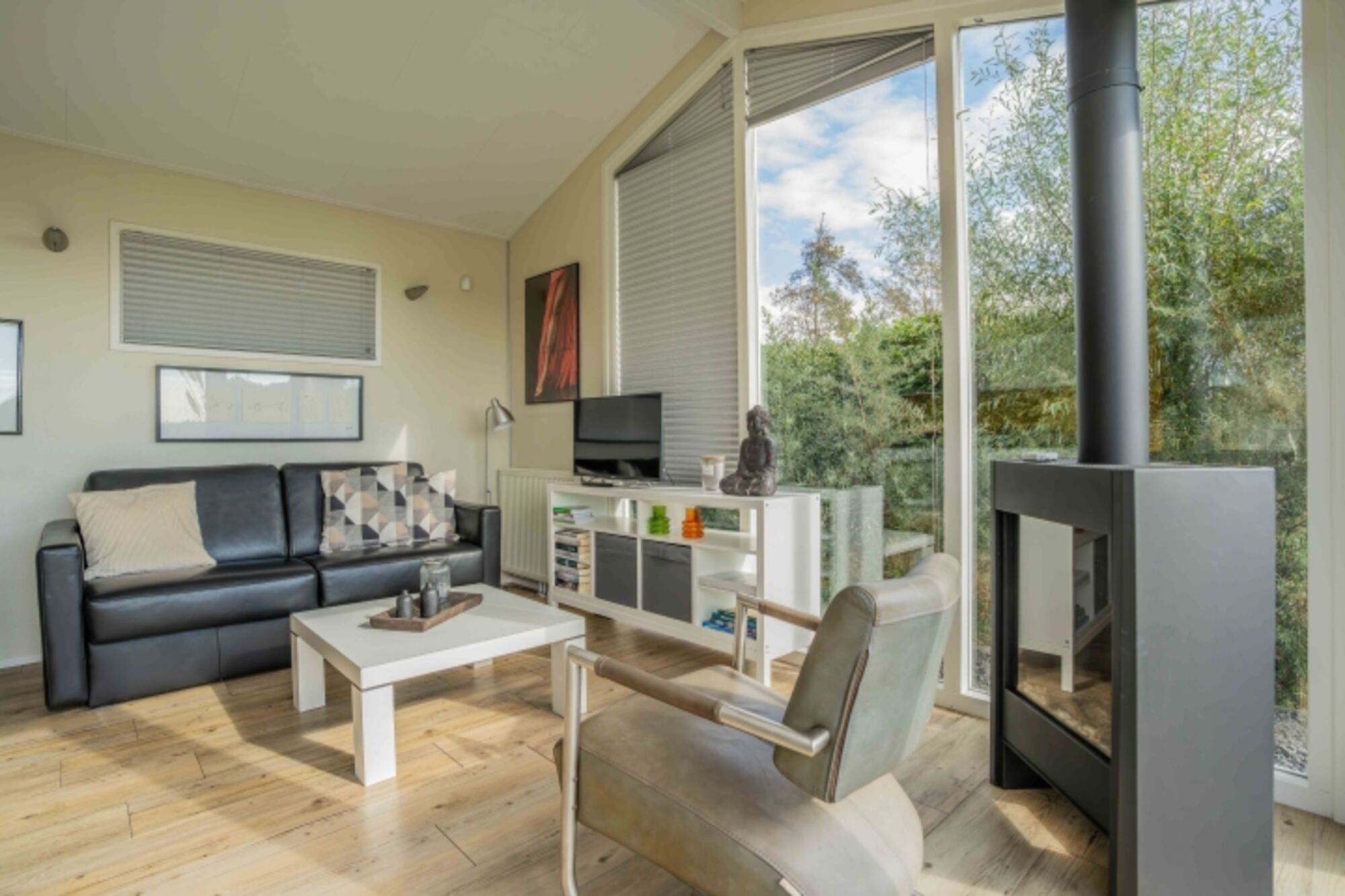 In diesem Chalet für 4 Personen holen die großen Fensterpartien die Natur bis ins Wohnzimmer. Das Wohnzimmer mit Gaskamin hat Flügeltüren zu einer größeren, angrenzenden Terrasse. Die Küche ist mit Geschirrspüler, Grillbackofen und Kühlschrank mit Gefrierfach komplett eingerichtet und verfügt über eine Senseomaschine. Im Badezimmer finden Sie eine geräumige Dusche mit Waschtischmöbel und Design Heizkörper.