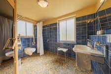 Wellnessbereich mit befahrbarer Dusche und Sauna (Sauna nicht befahrbar)