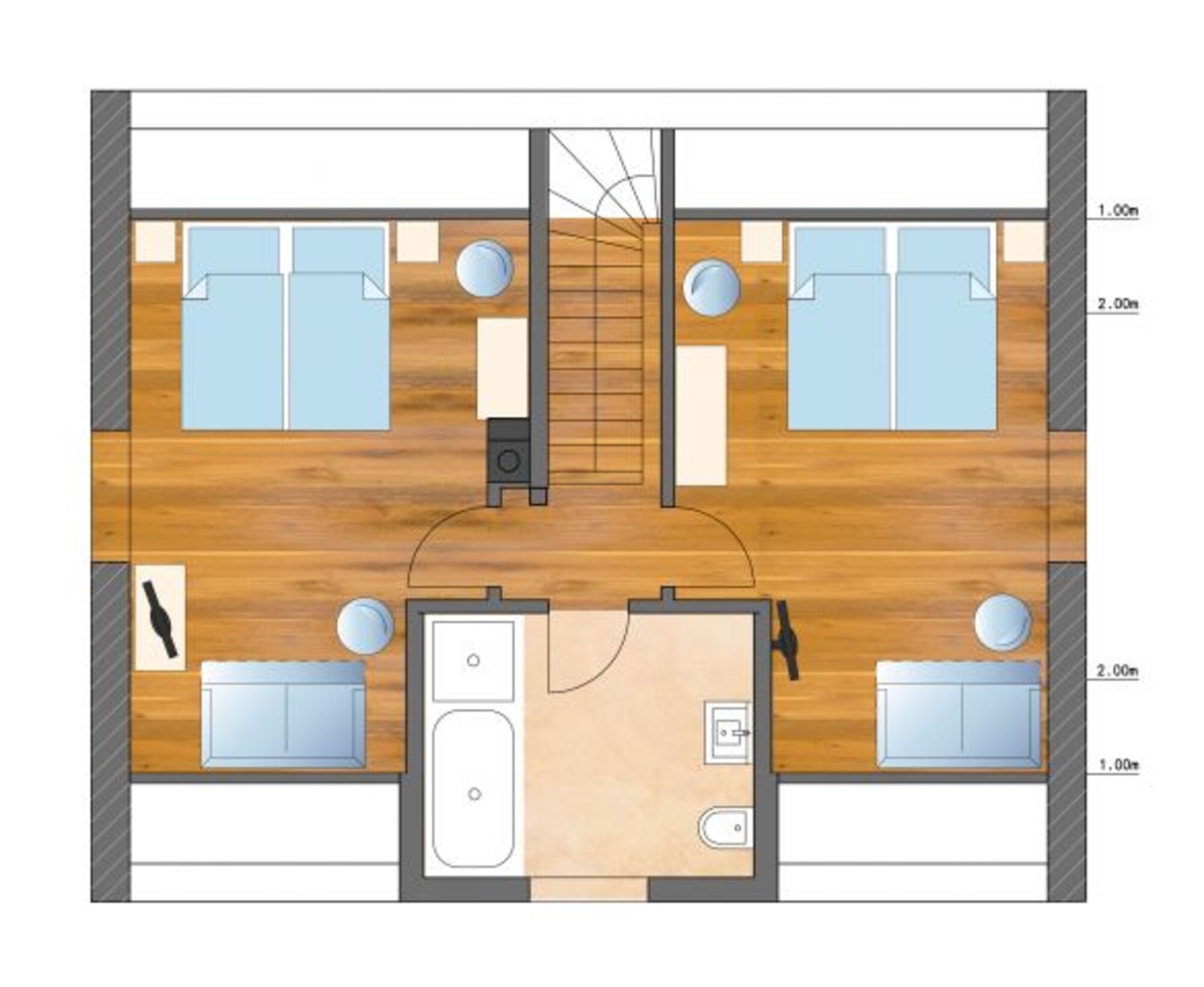 - 1 modernes Badezimmer mit Badewanne & Dusche angrenzend an die Schlafzimmer